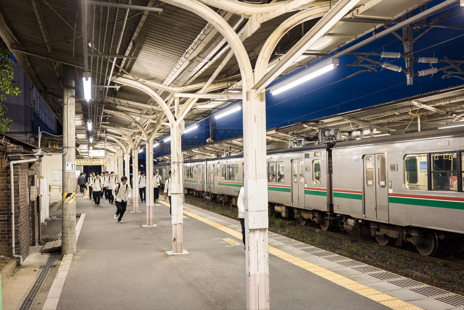 今天是周一,到达白石的时候已经将近晚上八点多钟,不少学生来这里乘坐JR。