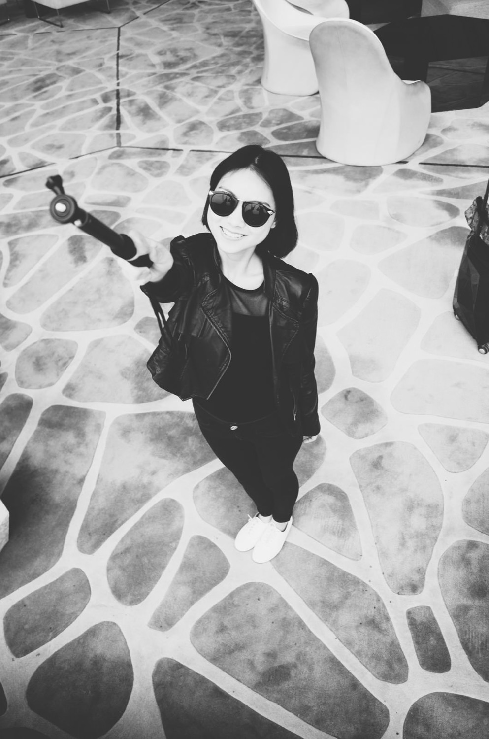 到达酒店1点多,酒店大堂人挺少,很大的落地窗,窗外不远就是海滩,等着房间收拾好,就在大厅等着,拿自拍杠做道具,拍了几张搞怪的照片。