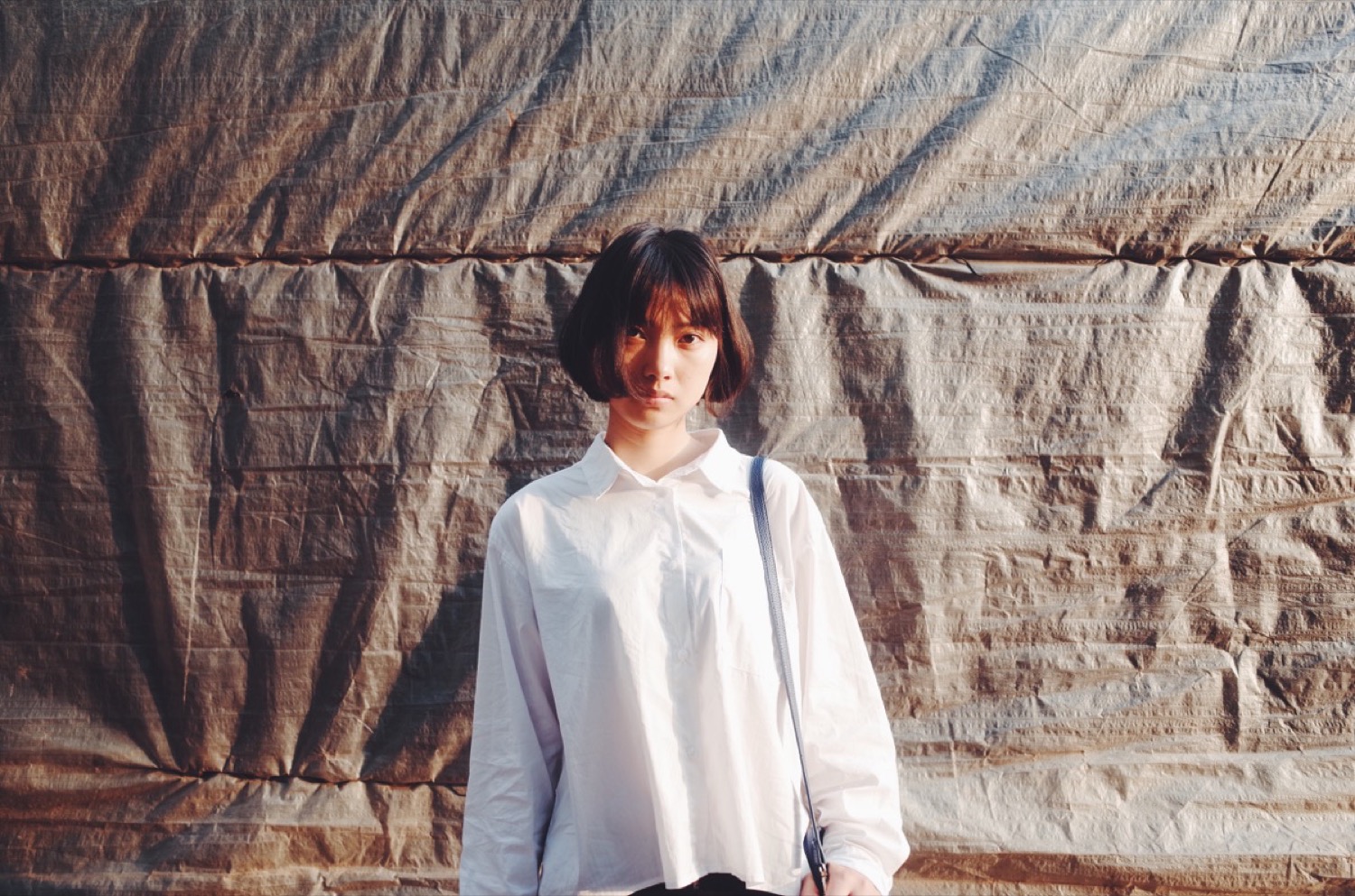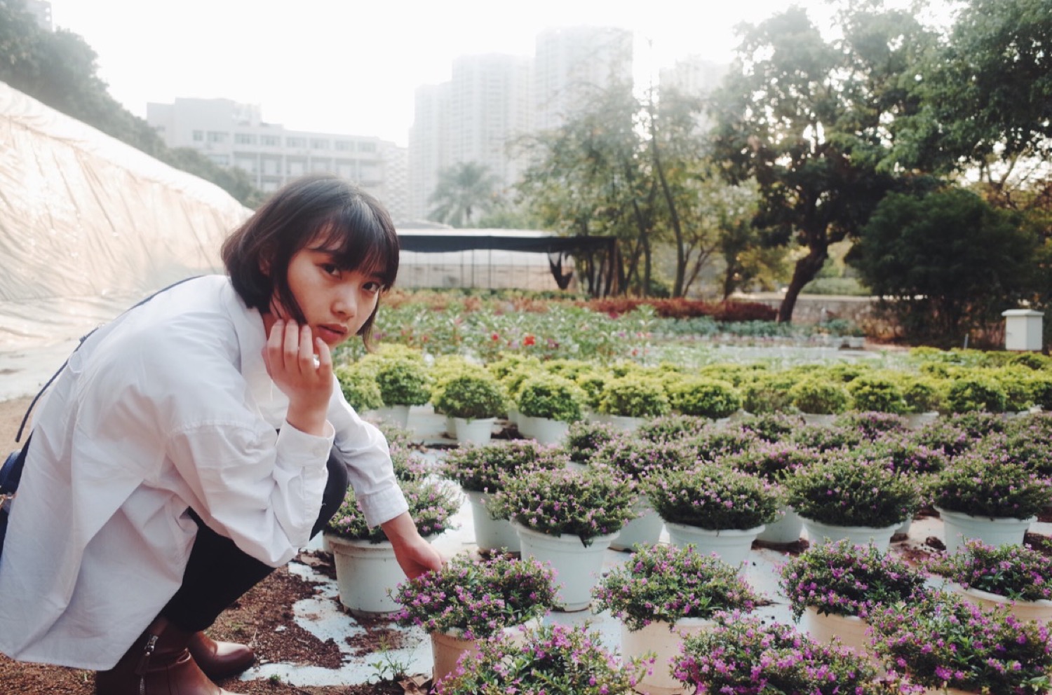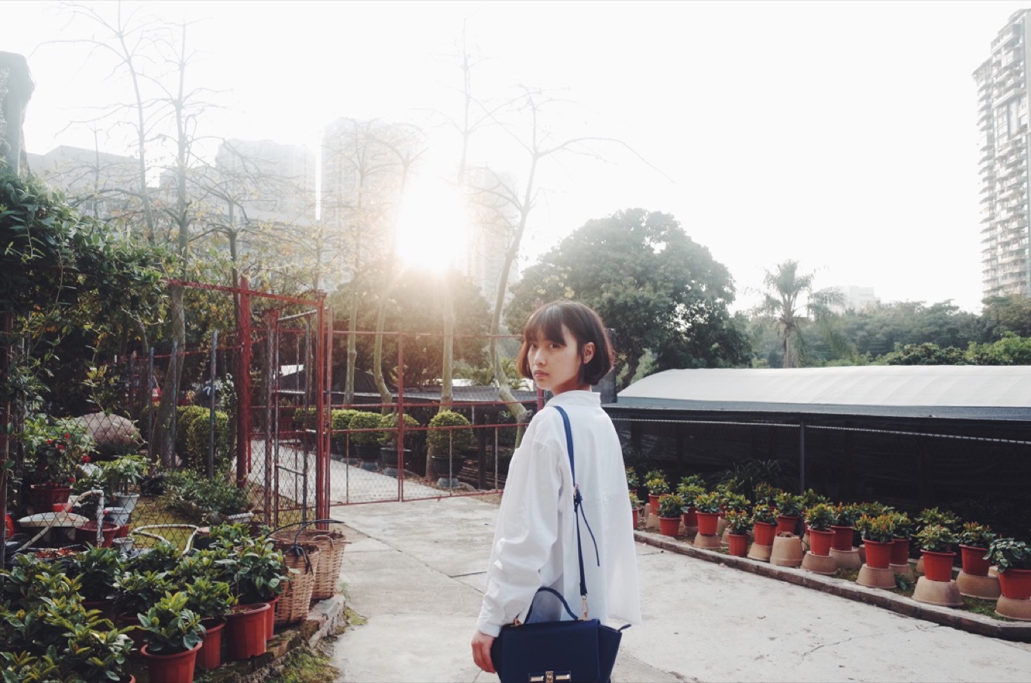 走到一个大棚,妹纸穿着素色白衬衫,与背景一反差,在阳光的照耀下,特别有质感,赶紧拍了好几张。