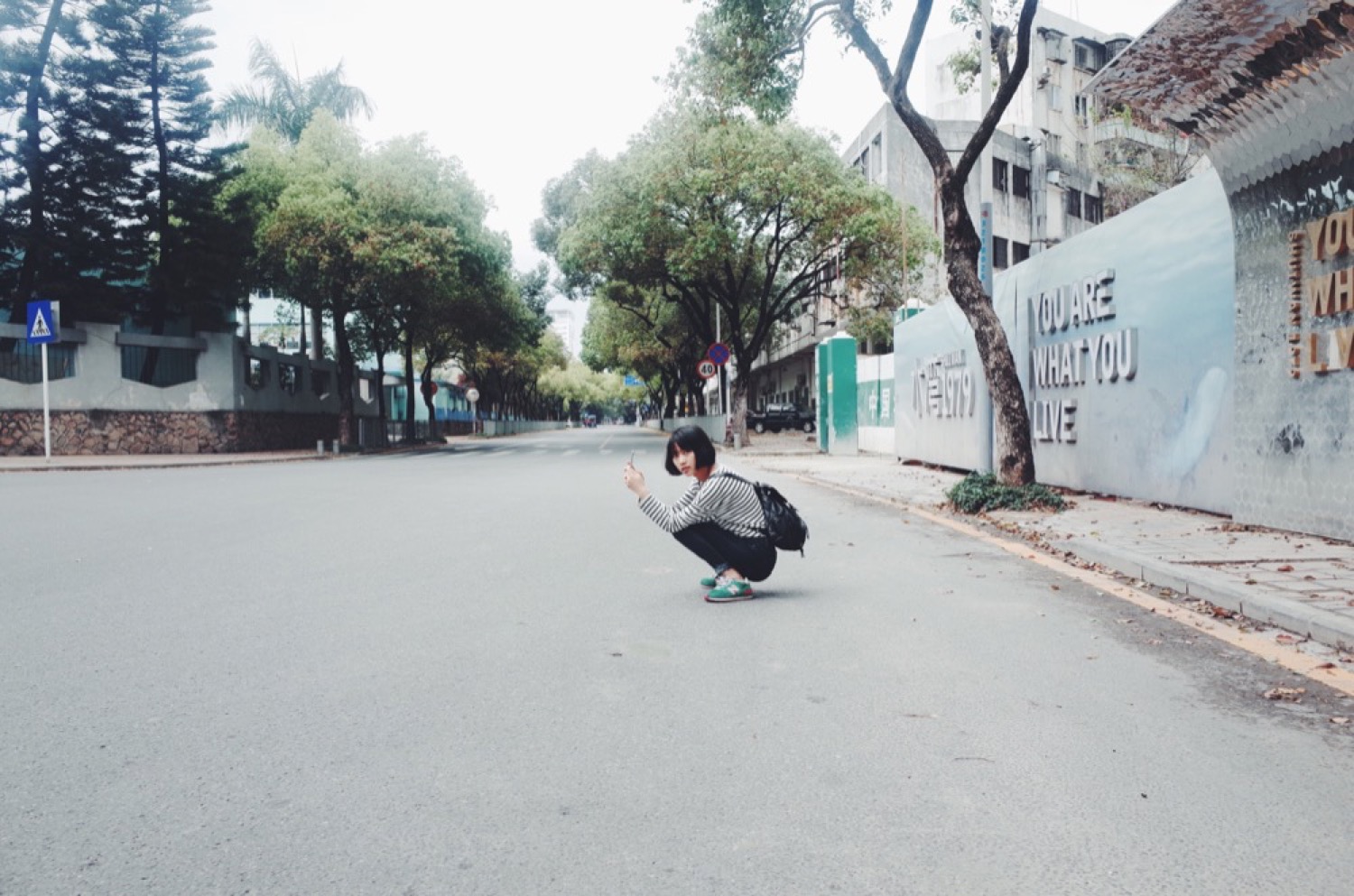 地图导航了一下,从学校走到海上世界大概就1.2公里,我同妹纸决定步行前往,天灰蒙蒙,清爽无风,路两边绿树成瘾,妹纸倒也是一路自拍。