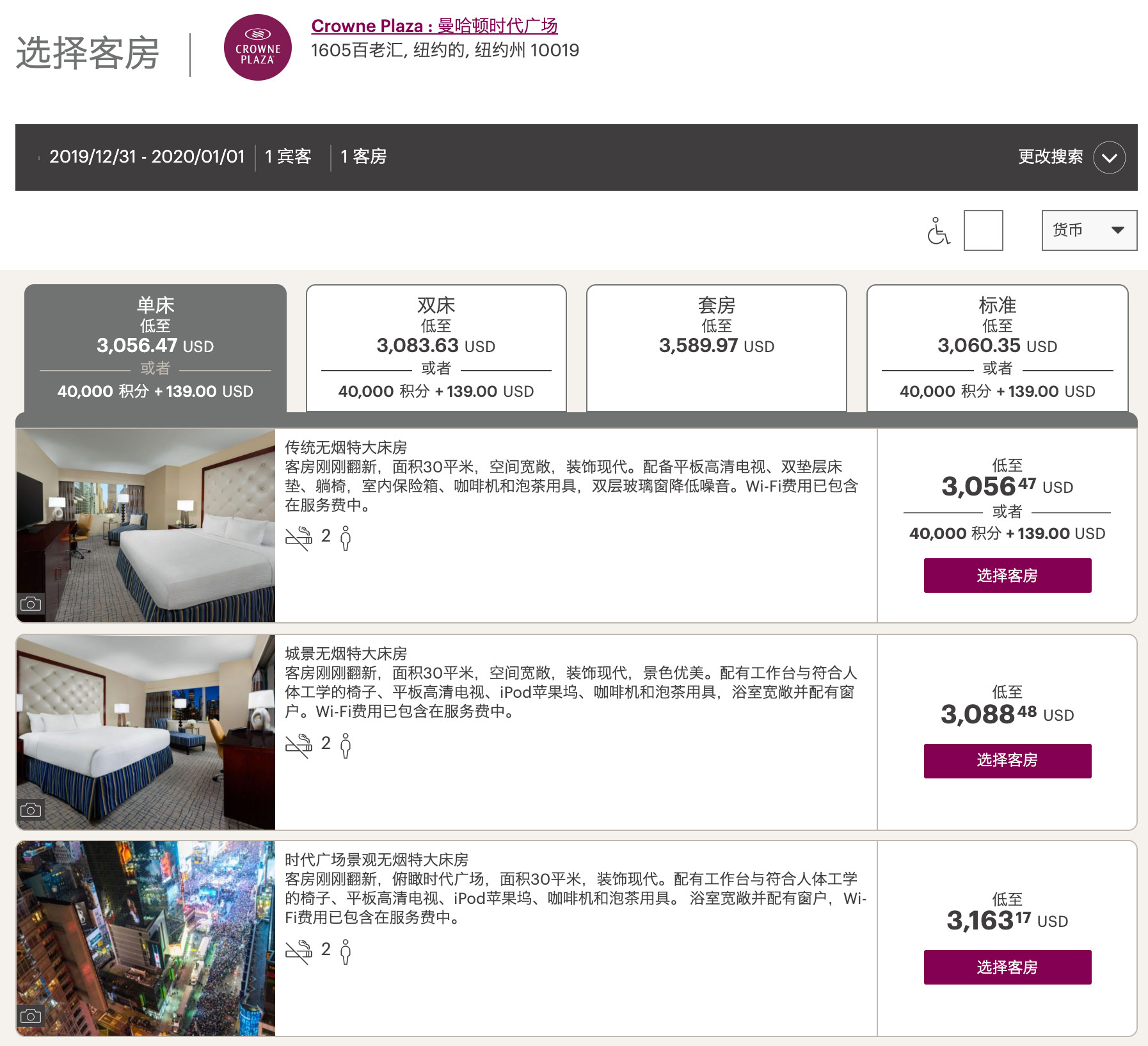 今晚入住的就是是皇冠假日时代广场店,地址就位于时代广场,由于地理位置极佳,直接下楼就能去到跨年现场,所以每年这个时候,价格都狂飙,30 日 31 日两天,房价官网要 3000 美元一晚。平时的价格没有这么贵,大概 120-150 美元一晚。