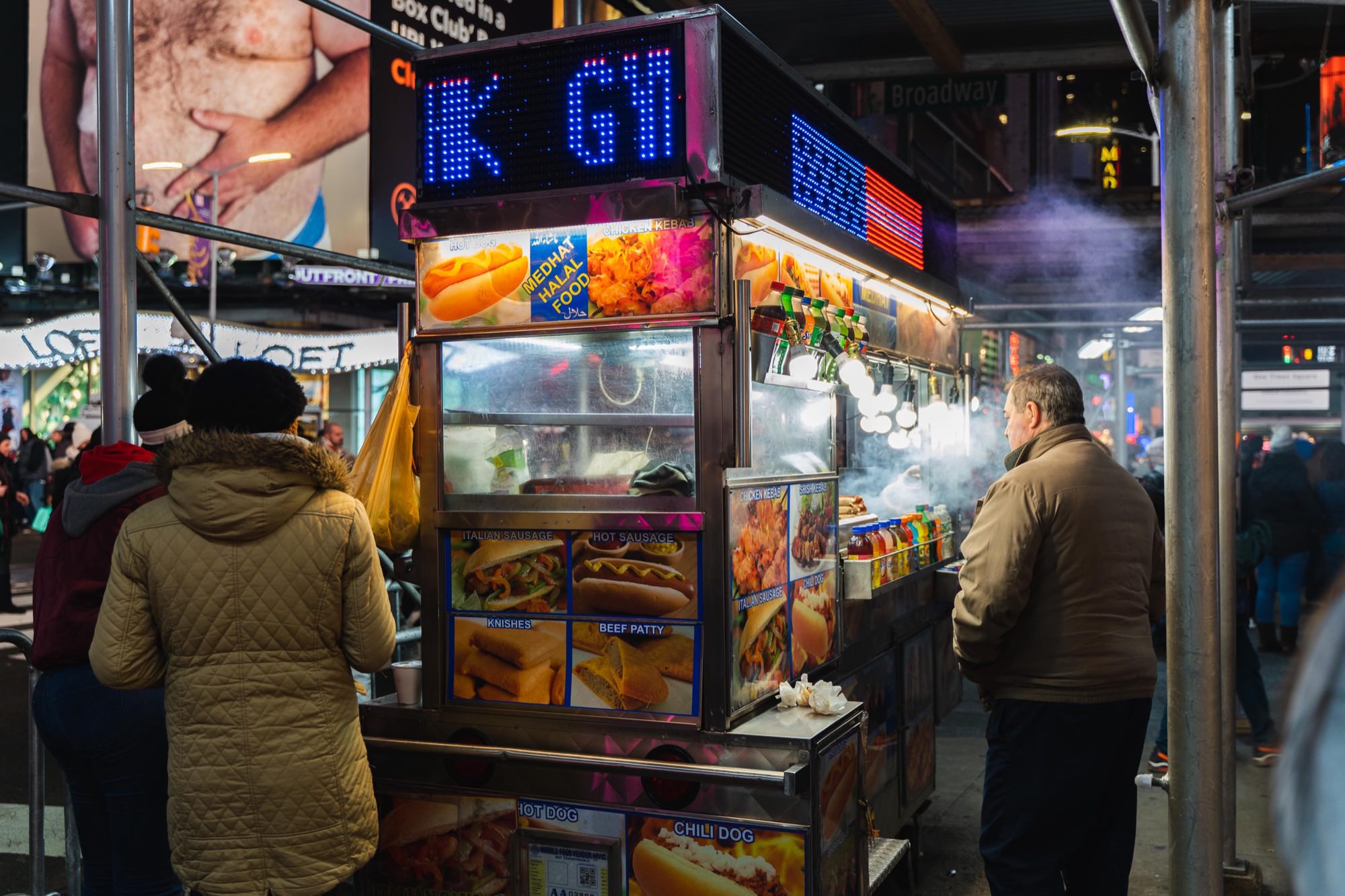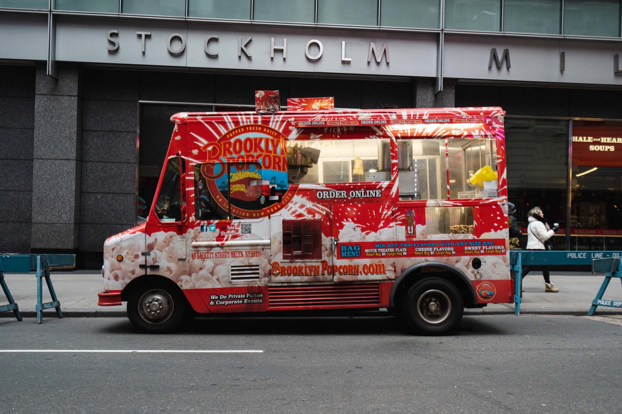 下楼逛逛,街边停的卖小吃的小车,纽约这种街边卖卖小吃的摊贩数量不算多,都要有牌照才行。