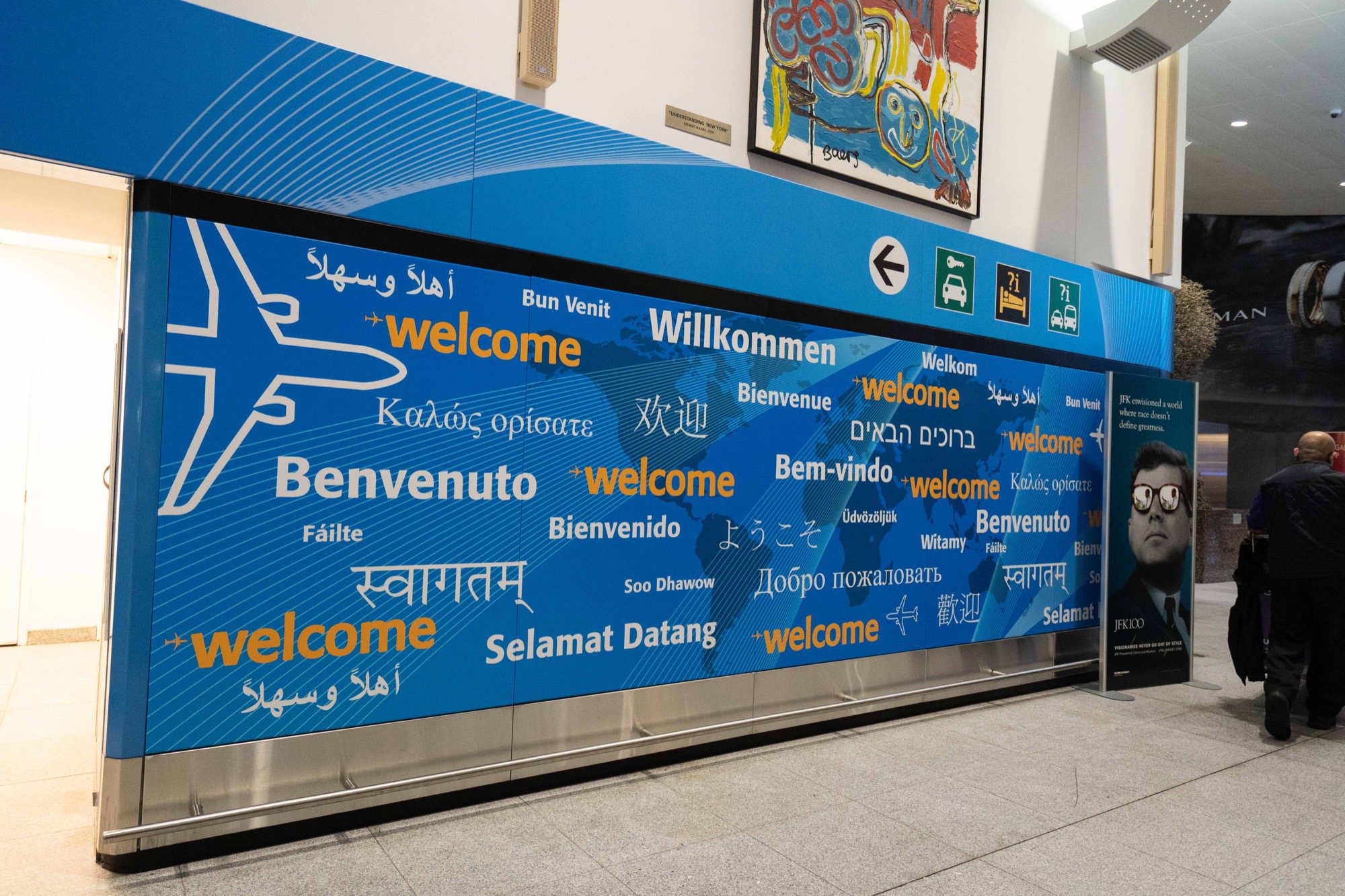 美国国际机场,基本上都能见到这各种语言的欢迎你牌子,大家给纽约的这个打几分?