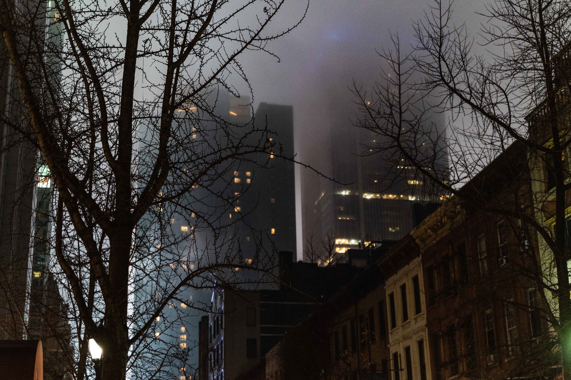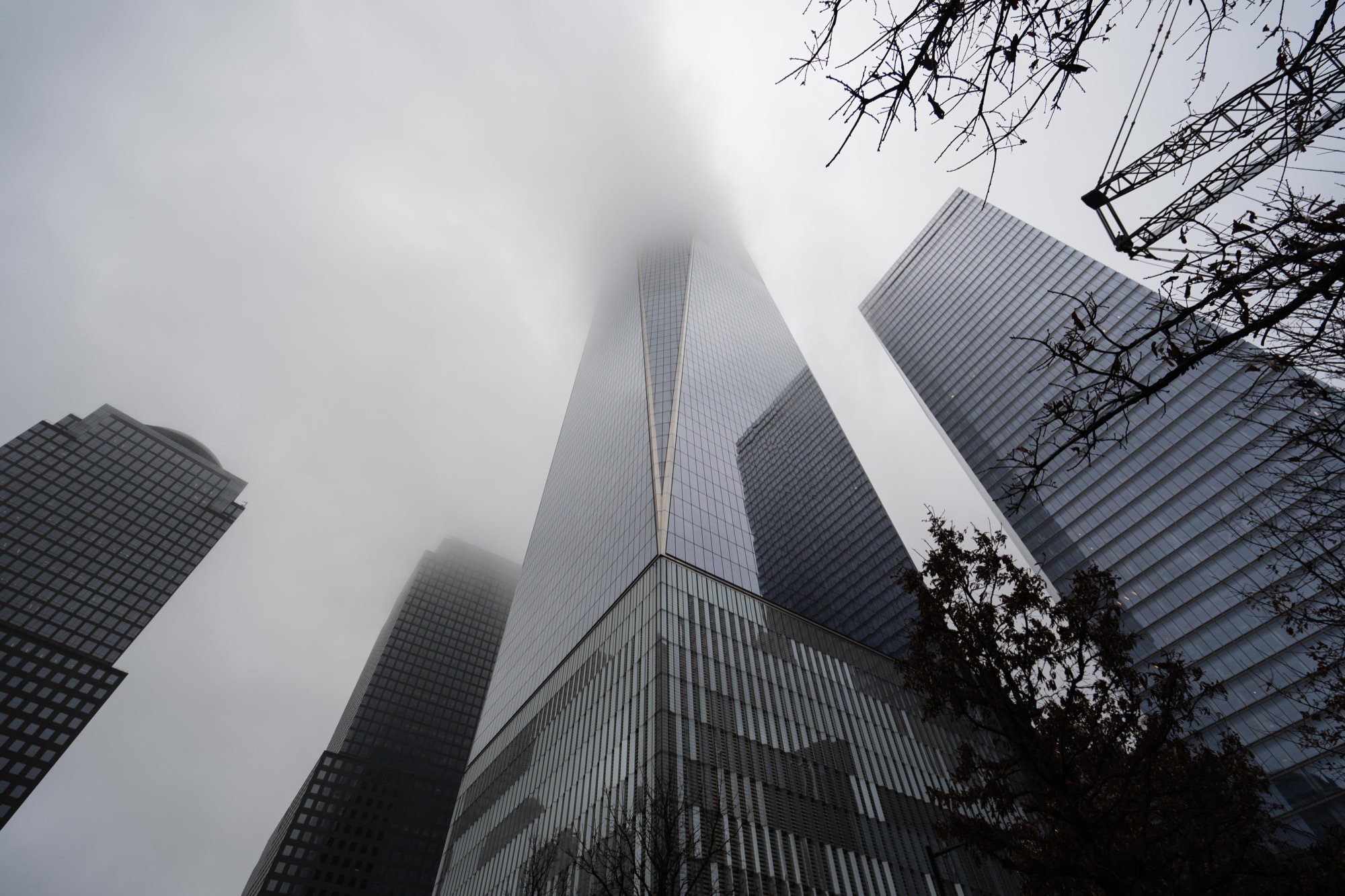 今天纽约小雨又起雾,新世贸中心隐藏在了雾中。