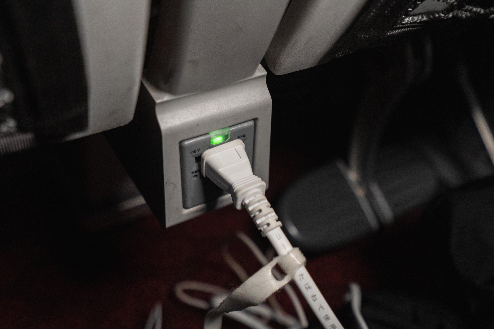 第一次在飞机上见到还有插座,110V,我随身带了一个日本买的插座,这下在飞机上用 MacBook,给 iPad 充电啥的也都不担心了,我还特意问过空服小哥说这个电压稳不稳,空服说没问题。