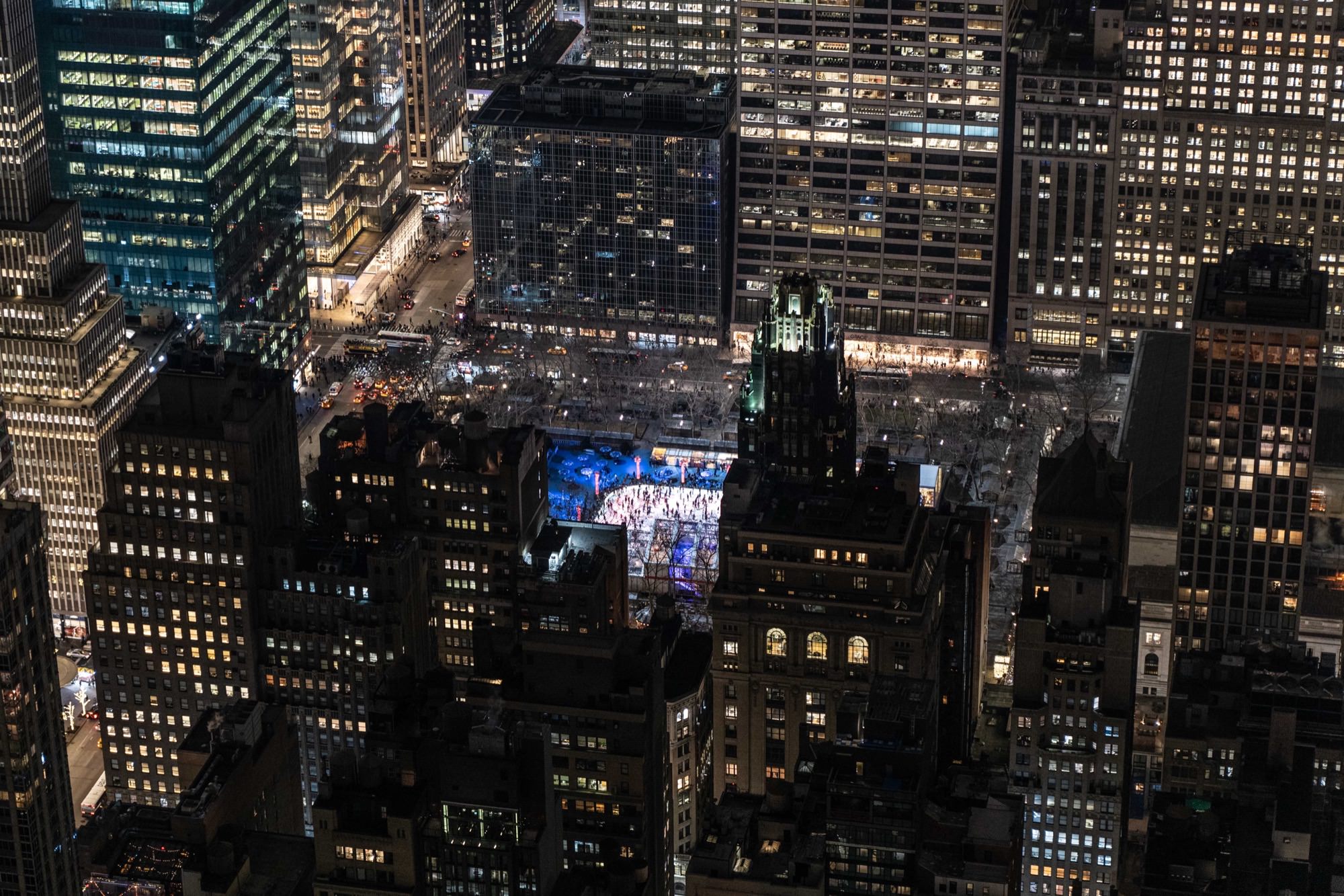 在帝国大厦俯瞰街道,也很有意思,晚上风很大,又冷,我穿着羽绒服,带着手套,在帝国大厦观景台不亦乐乎。蓝色那个是一个著名的滑冰场。