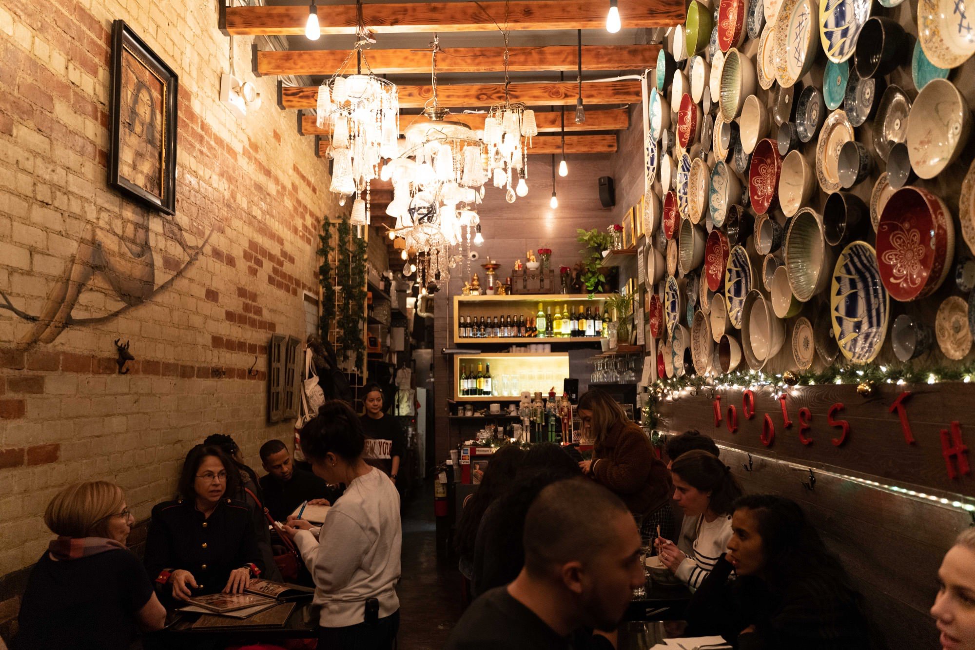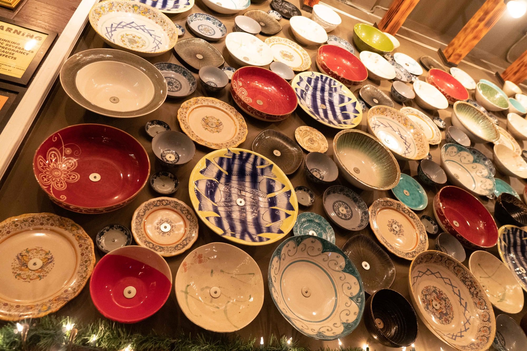 饭店还挺有特色的,一面墙上全是各种碗,纽约吃饭很贵,小费也很贵,现在一般都是 18%起了。
