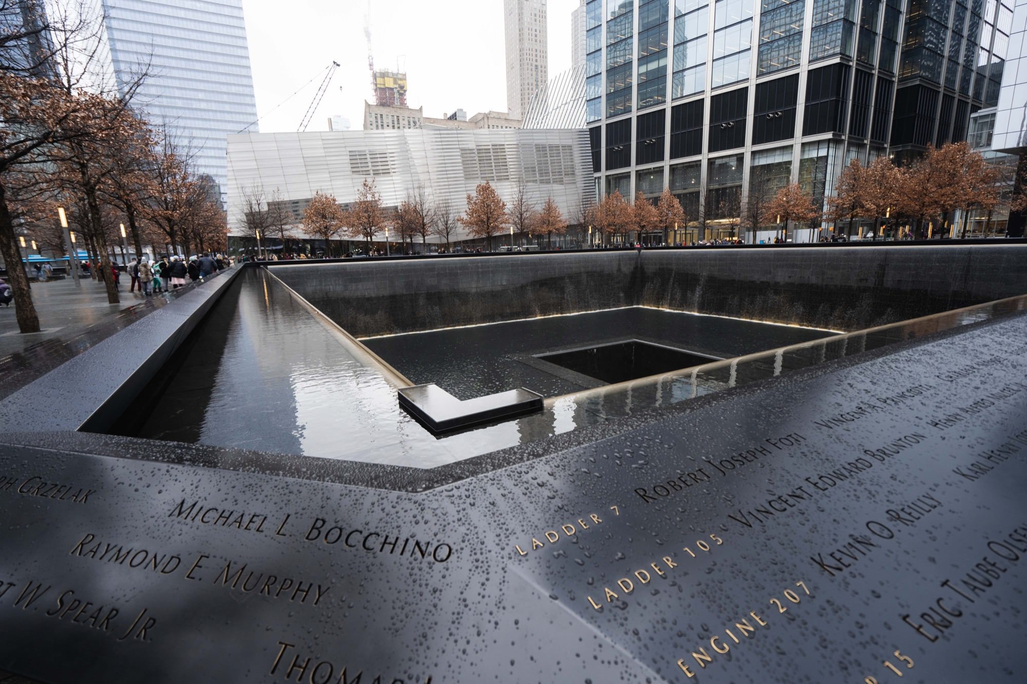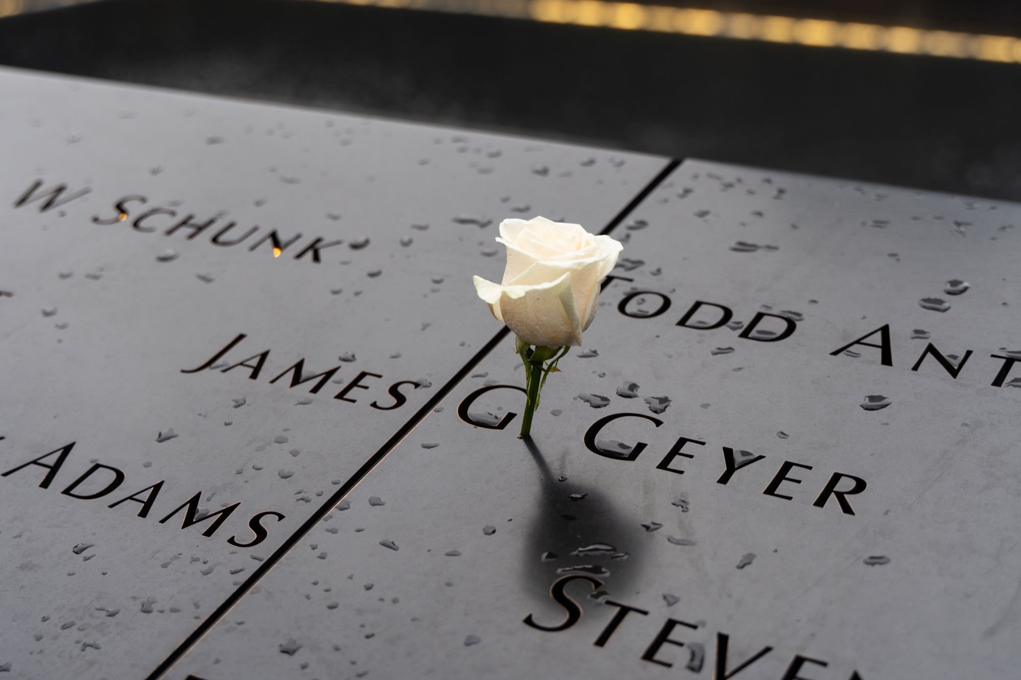 写满了遇害者姓名的纪念碑上,一朵白花。周围是四面水墙,每一个名字背后,都是一个家庭,一个故事,我还看到了一个中国人的姓名,登录 911 纪念博物馆官方网站,还能找到他的生平。