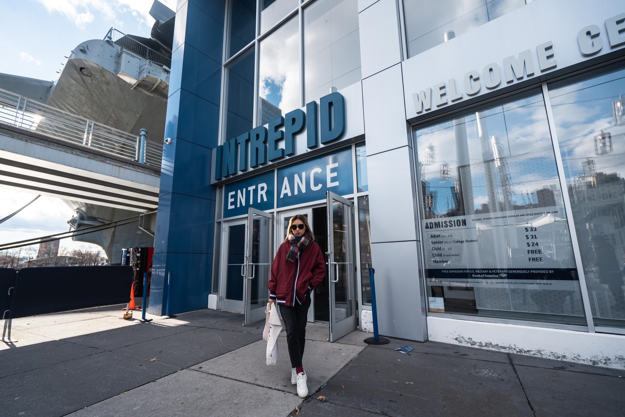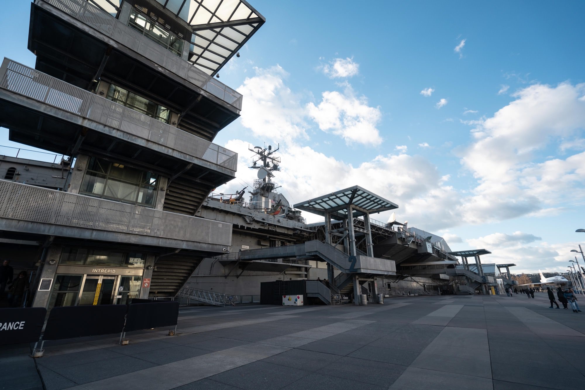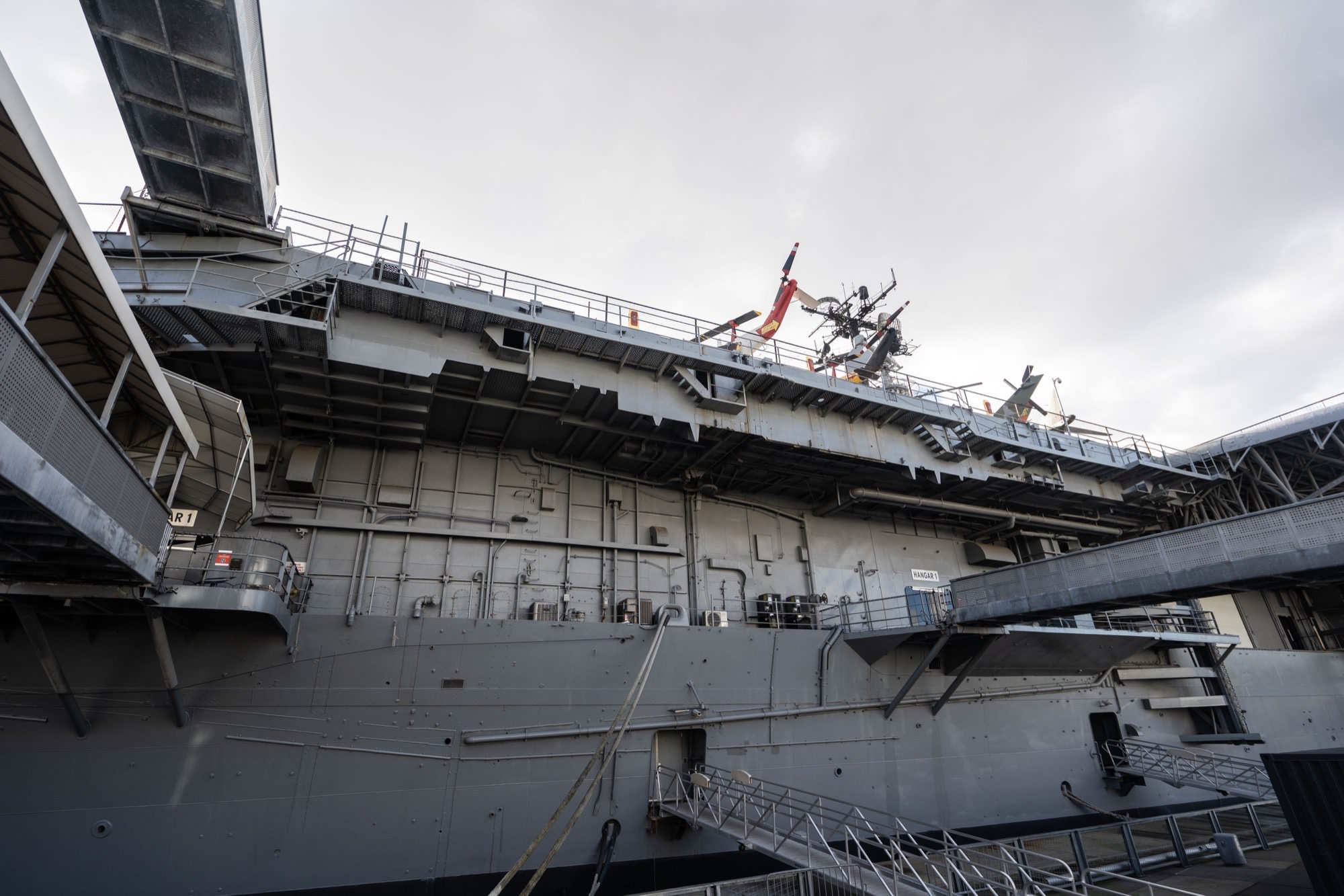 今天来参观「无畏号海洋航空航天博物馆」,比较硬核,航母博物馆旁边有一艘大游轮。