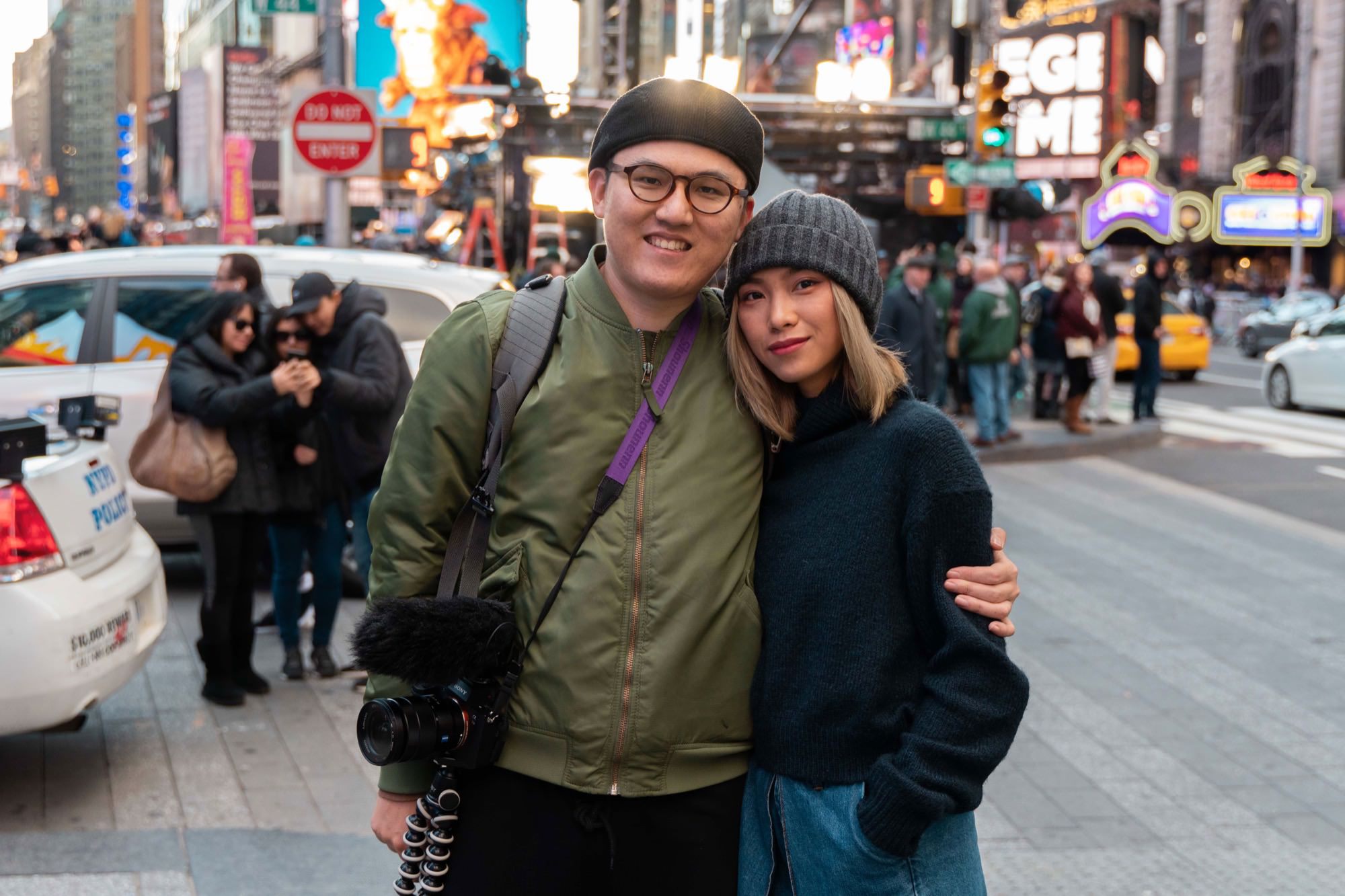 在时代广场,给一堆老夫妻拍了一张照片后,他们问要不要也给我们拍下,来都来了,也拍张合影吧,真胖预警。