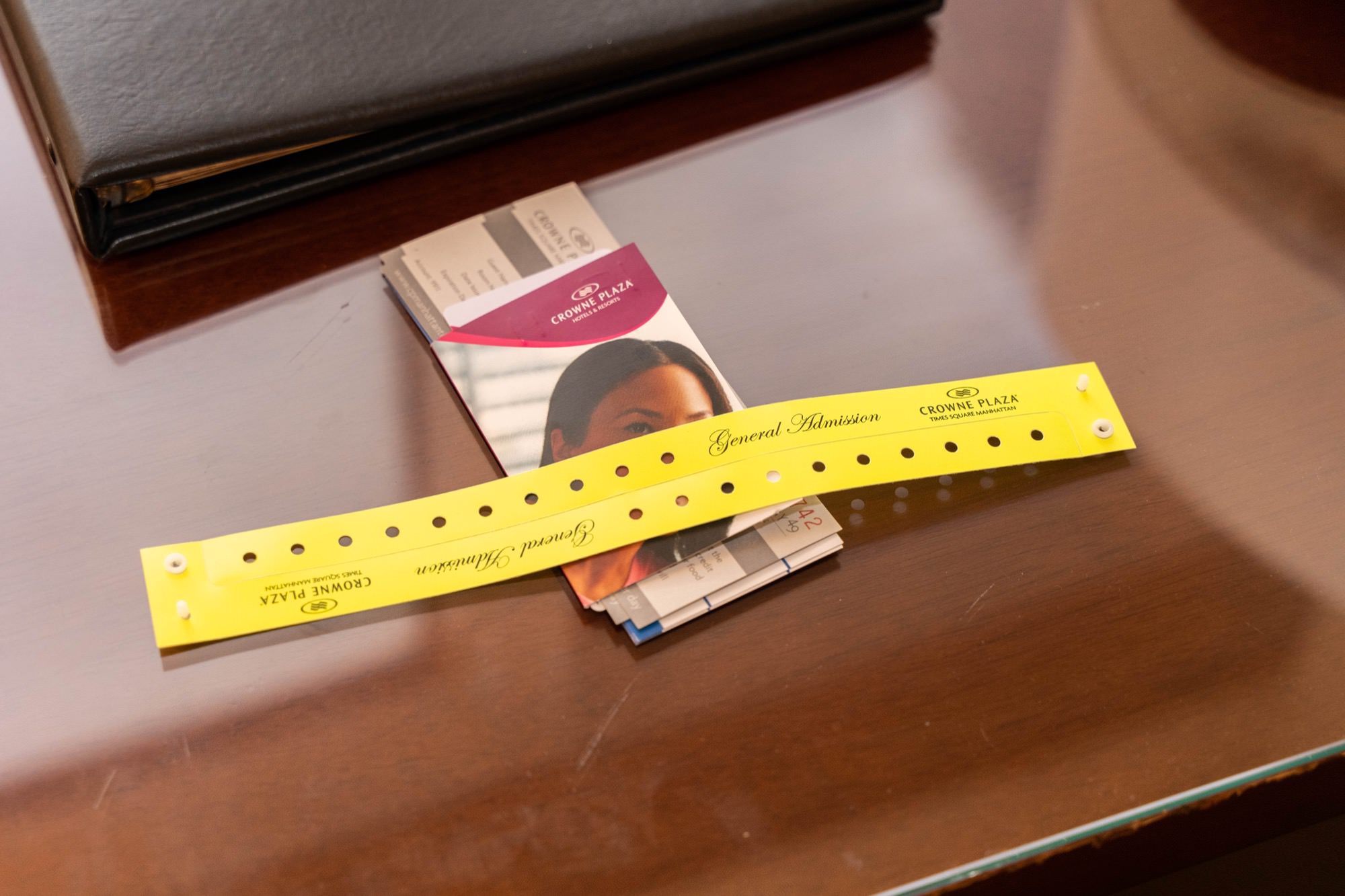 酒店平时房价 200 刀不到,这个黄色小腕带,大概值 2800 美刀吧。由于时代广场跨年当天,从中午时间,警察就开始封路,到了一定人数后,时代广场只给出不给进,住在酒店的房客,只能凭这个腕带,进入时代广场。所以,不用在户外等十多个小时,可以直接等到晚上 10 点 11 点再下楼,直接去跨年现场,这是皇冠假日时代广场这家店的一个特殊优势。