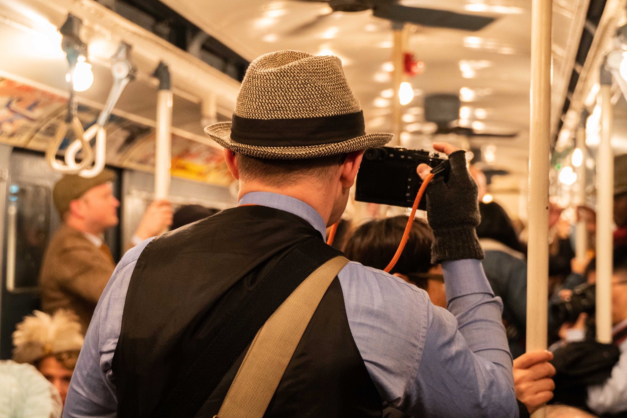 既然是复古列车,复古的不仅仅是车本身,来的乘客也可以身着复古装扮,一起加入这个大型城市 COSPLAY。