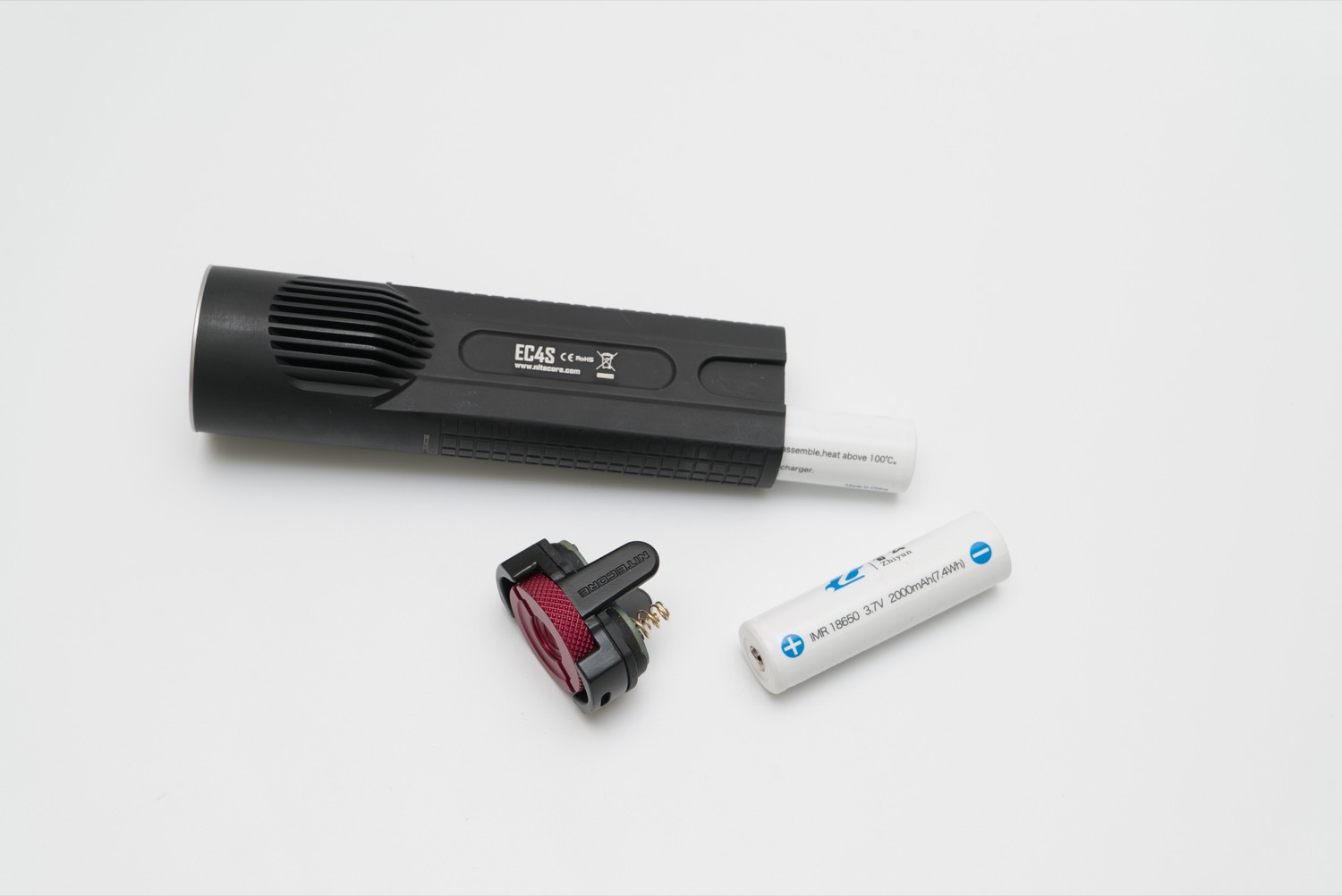 EC4S用的两节18650电池,最高2150流明,可以闪瞎眼,支持5种亮度调节: