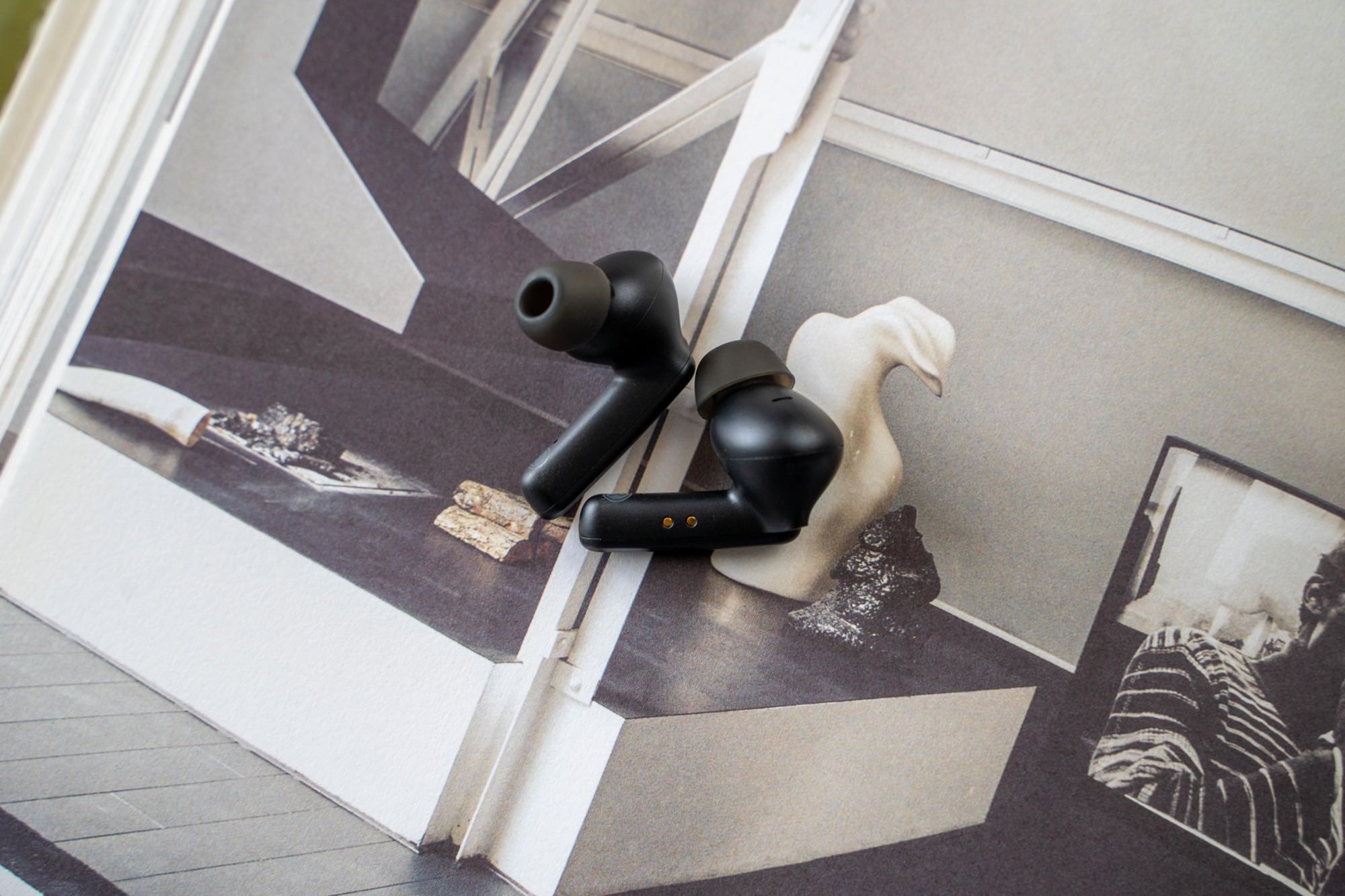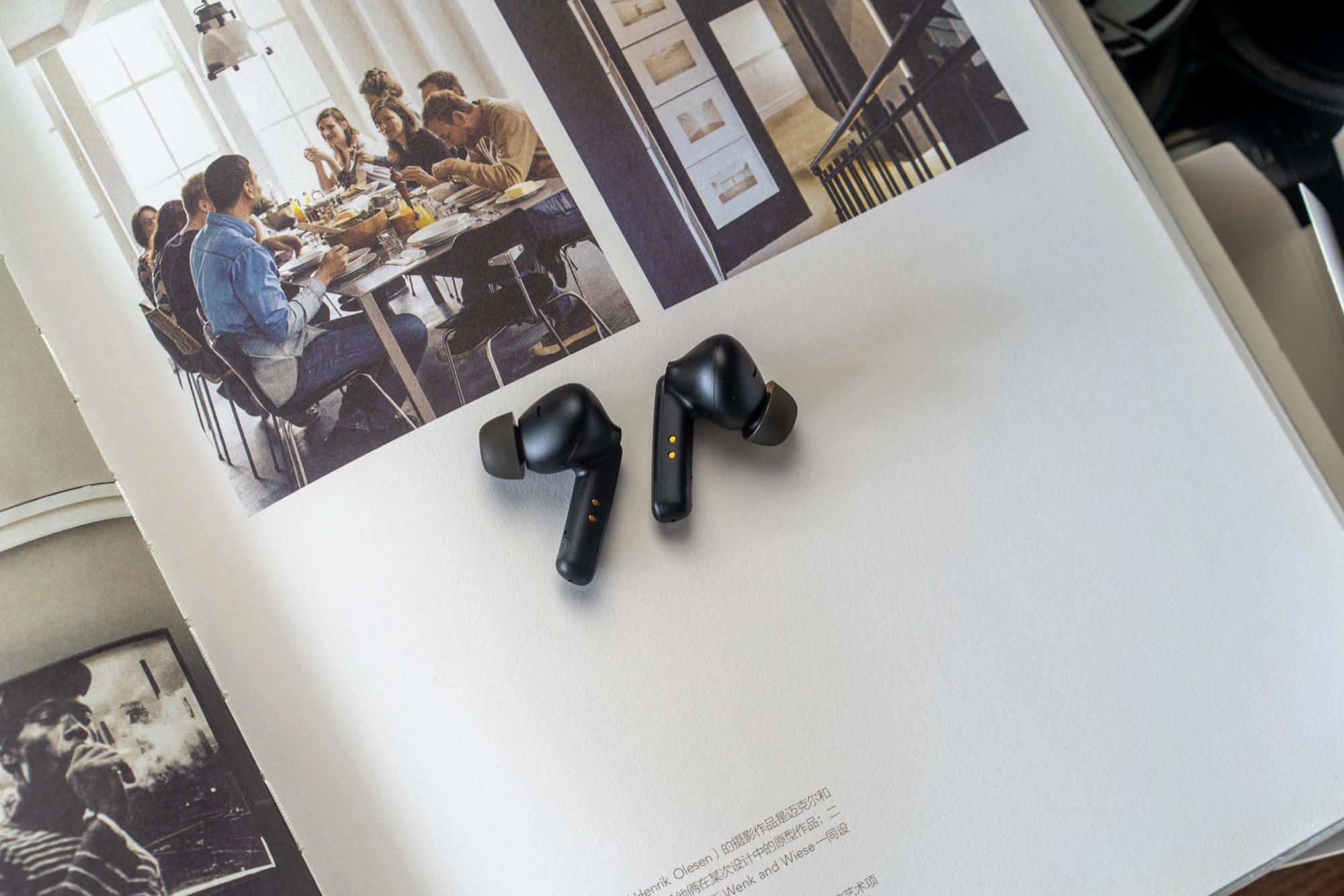 耳机采用入耳式设计,黑色比较低调,不知道以后会不会出白色款式。两个耳机都支持触摸调节,分别单次触摸、多次触摸、长按触摸,可以进行上一首、下一首切换、模式切换等操作。