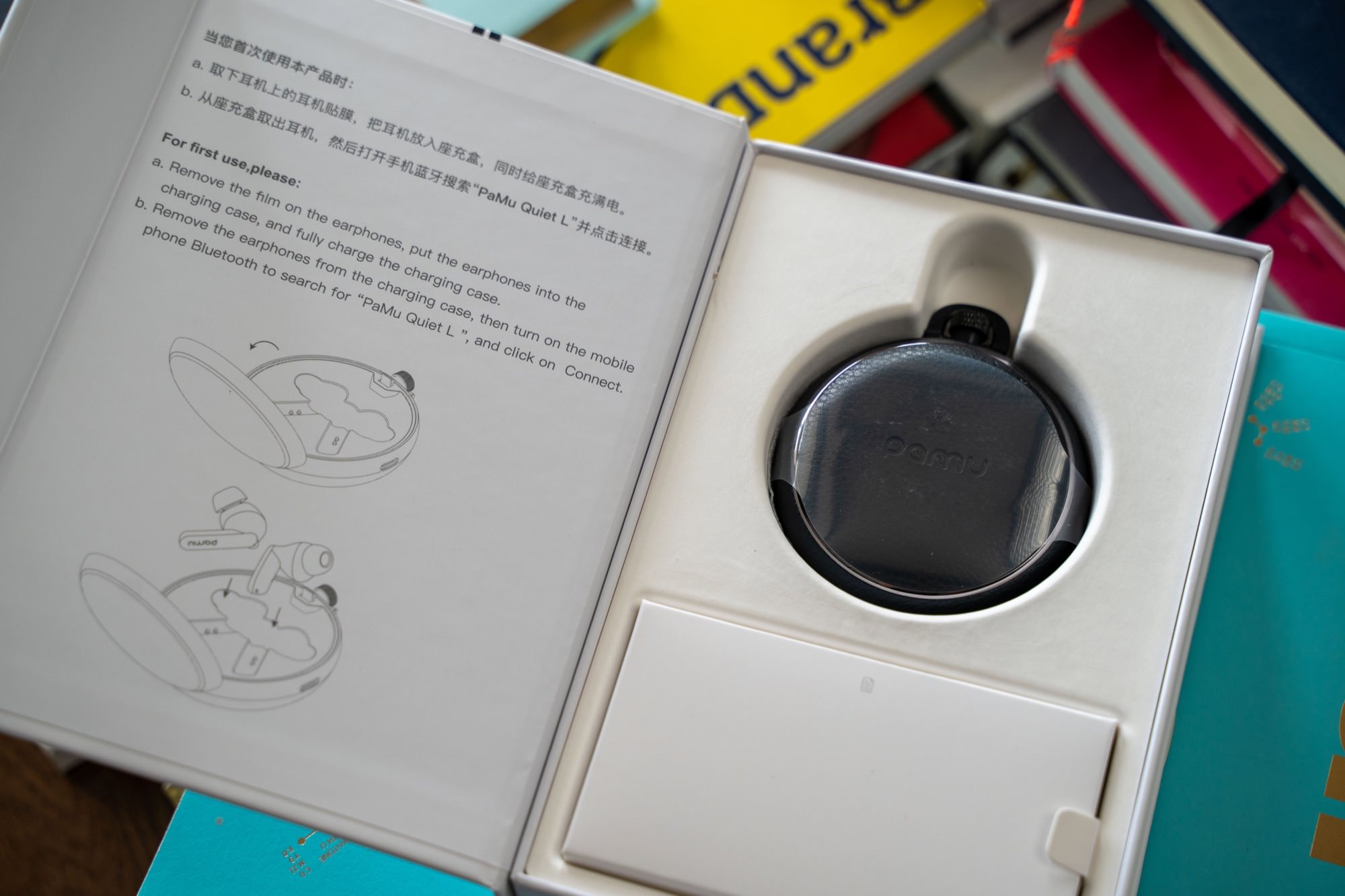 抽出真身,就是今天的主角派美特 PaMu Quiet 真无线降噪耳机,采用黑白包装,这也是目前派美特的旗舰降噪耳机,不同平台优惠价格在600到700之间。