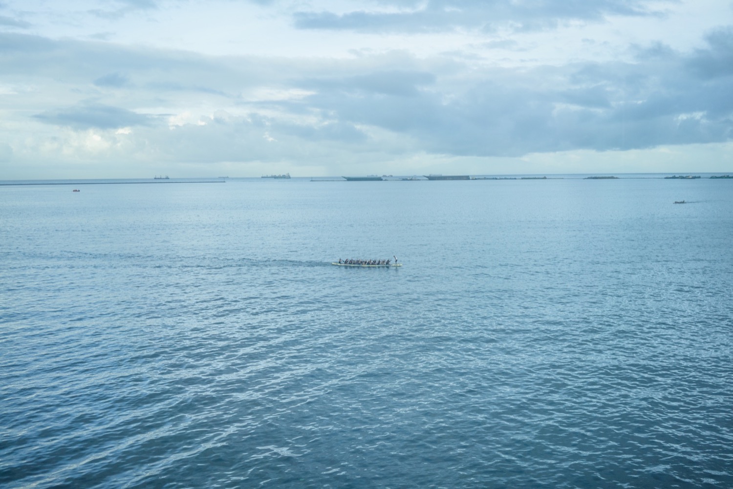 航拍完毕,回到酒店,那首船已经不见了,两首赛艇在海上练习,我无人机飞过去的时候,船上的人还跟无人机打招呼。