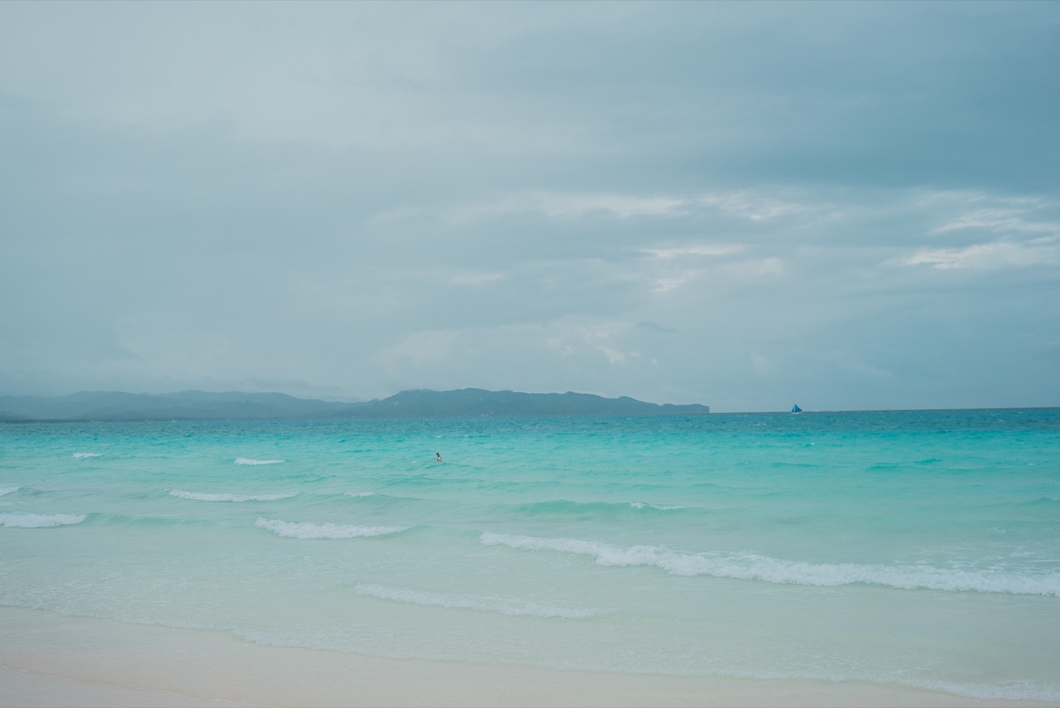 长滩岛的天气,说变就变,不一会就下了一阵雨,看远方的云,阵势也挺大。海滩上没什么人,沙滩很白,靠近海岸的水呈青绿色,甚是好看。