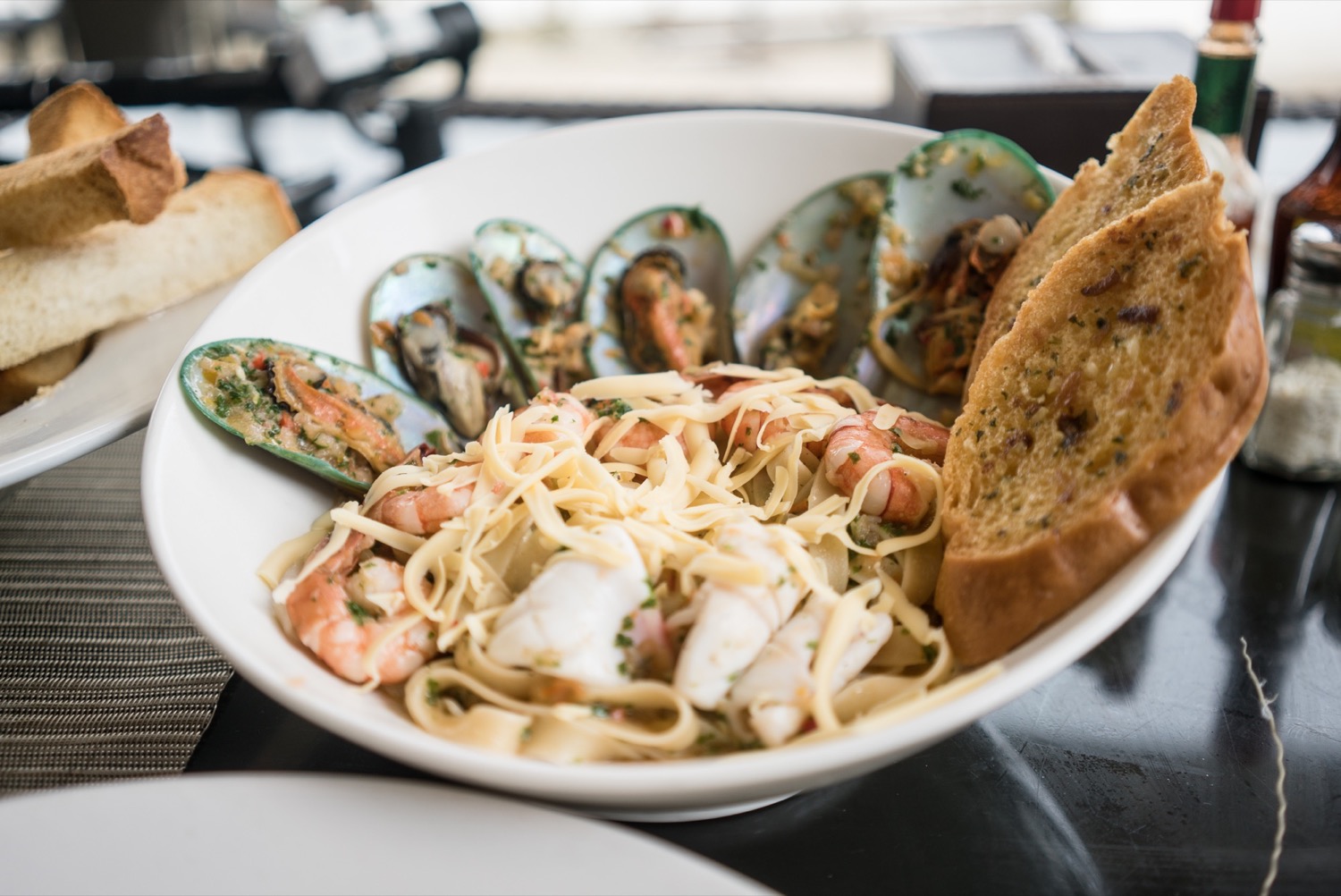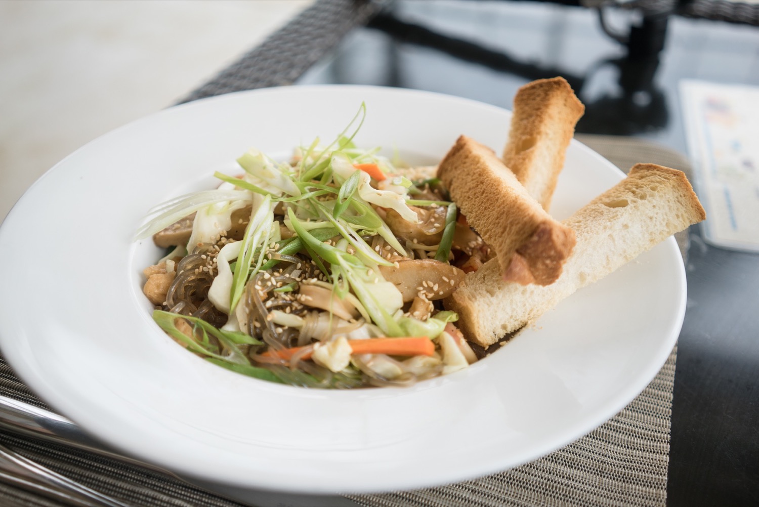 中午时间到,肚子差不多咕咕叫了,找了一家在海边的餐厅。昨天晚上吃的是飞机餐,下了飞机吃的是汉堡,今天早上吃的也是飞机餐,这应该算是我们这次菲律宾之行第一顿正儿八经的饭了,点个炒饭满足下空虚的胃。