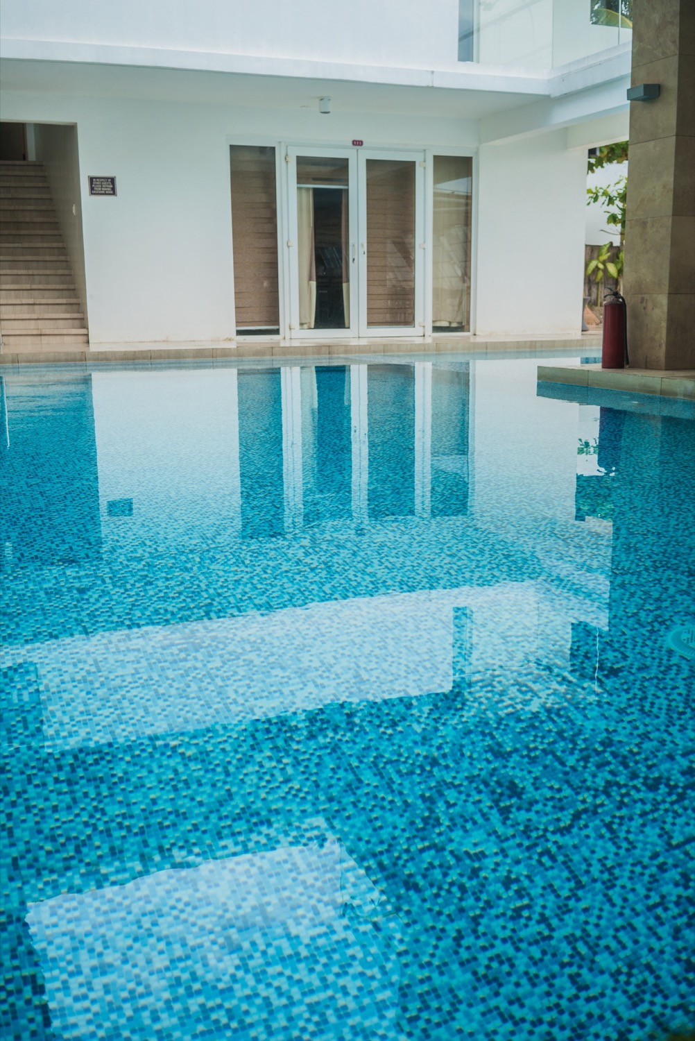 酒店一楼有户外的游泳池,岸边就是酒吧吧台,能边喝酒边游泳,由于现在非旺季,人不多,酒店内见到几个中国人,有不少韩国人。