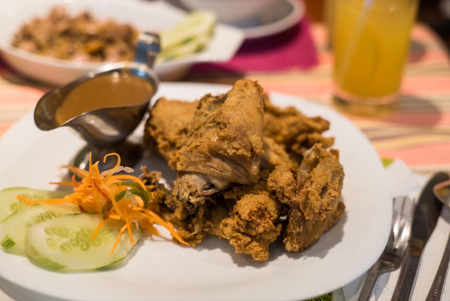 在D-Mall逛了半圈,肚子虽饿,却也提不提太大的胃口应该是中午吃太多的缘故。走了两圈,随便找了一家餐厅,点了份炸鸡和扬州炒饭,没错,大中华之扬州炒饭。