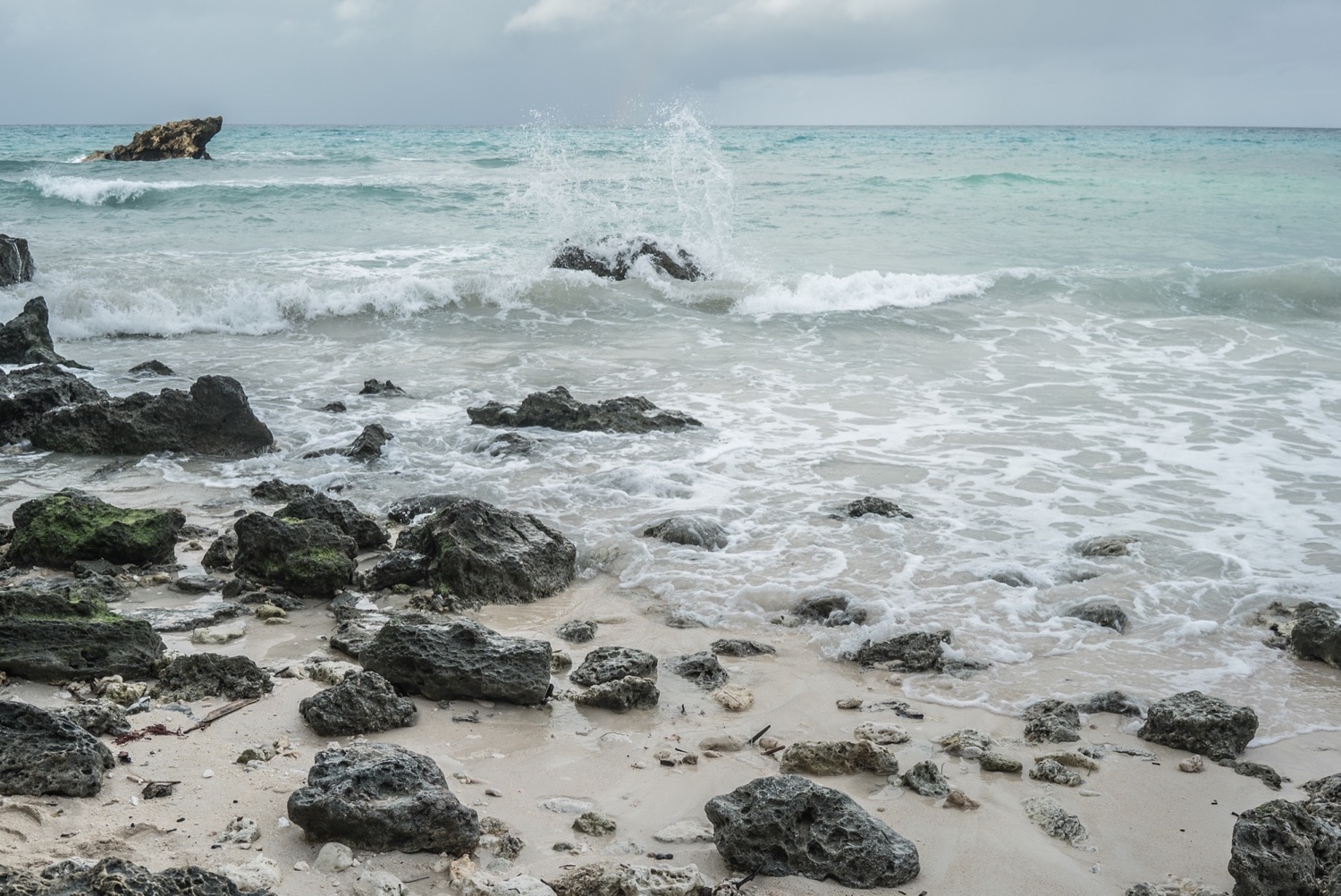 沿着沙滩往南边走,绕过树林,走到树林后面的一个小山谷,海滩上不少岩石,浪不小。
