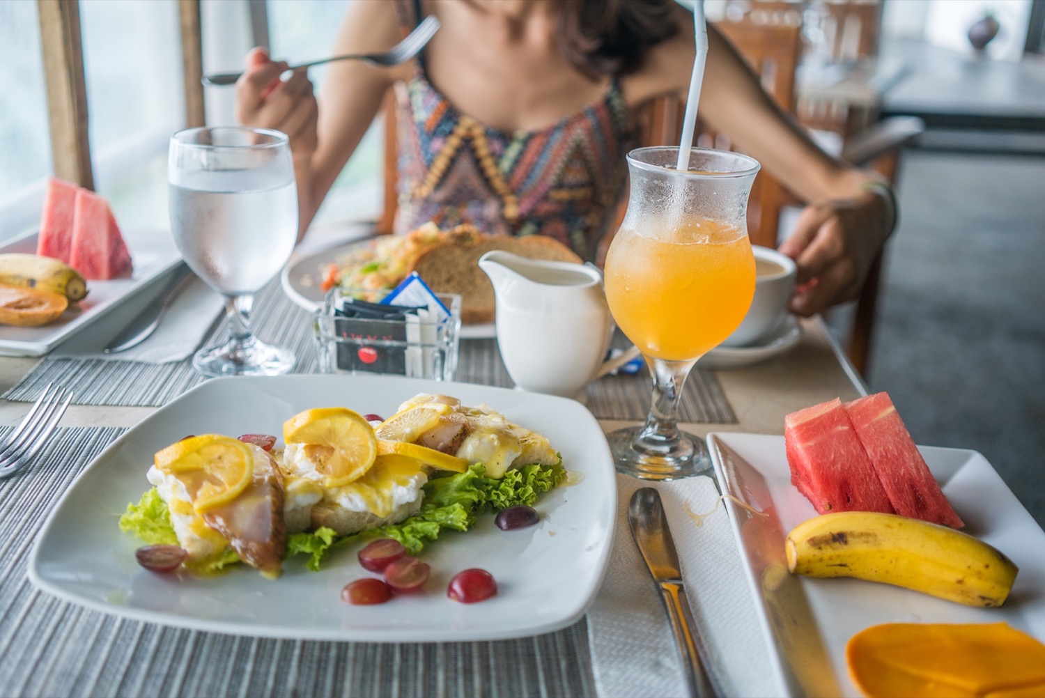 两个人选了一个靠窗的位置,分别叫了一份Nami菲律宾特色的早餐,一份西式早餐,今天的橙汁味道倒不错。
