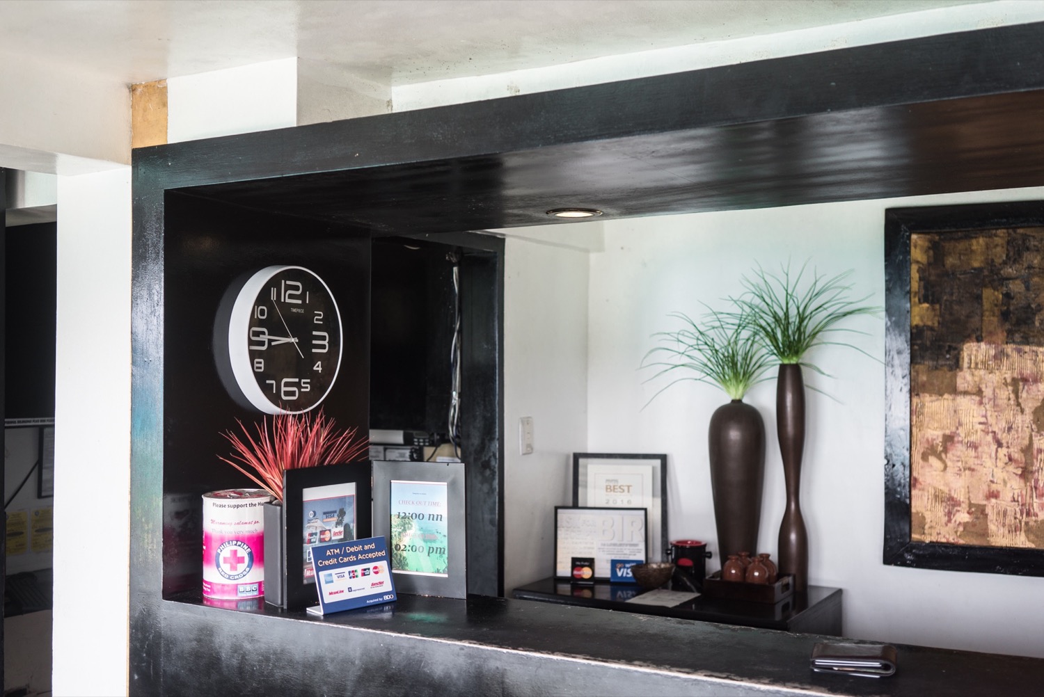 全部员工都身着跟酒店外墙一样深绿色的正装,前台很有味道。