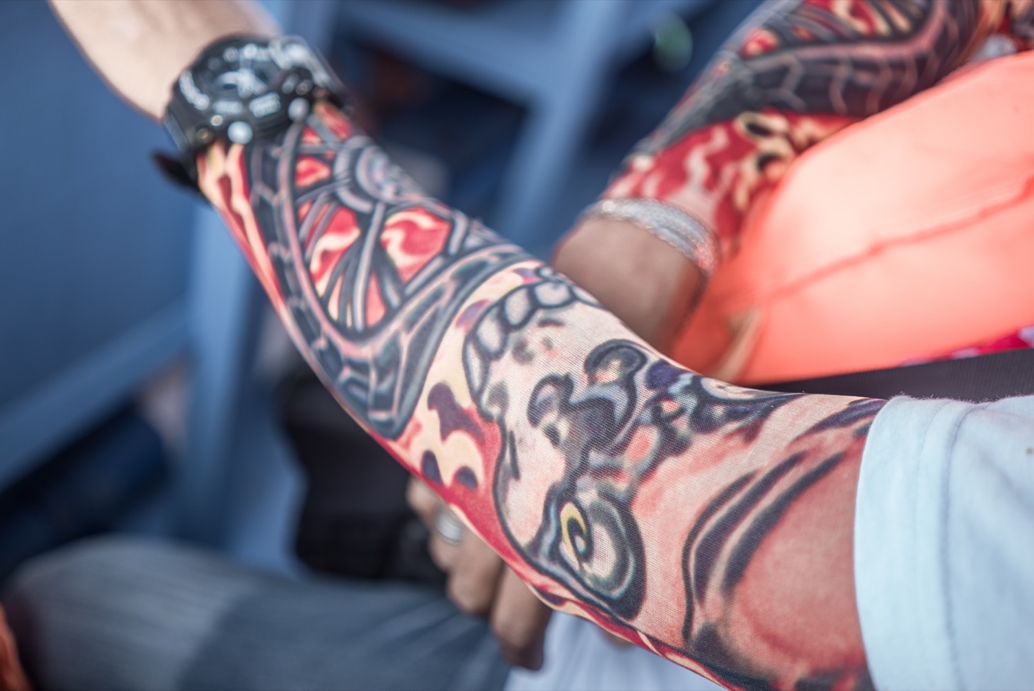 坐在我旁边的一个本地人的贴身衣袖,我还以为是纹身,挺有特色的。