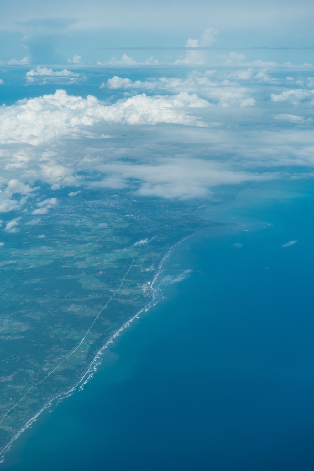 回马尼拉的航班有挺多空位,上了飞机我自己换了一个靠前的座位,相机也换上2870镜头,开启人肉航拍模式。