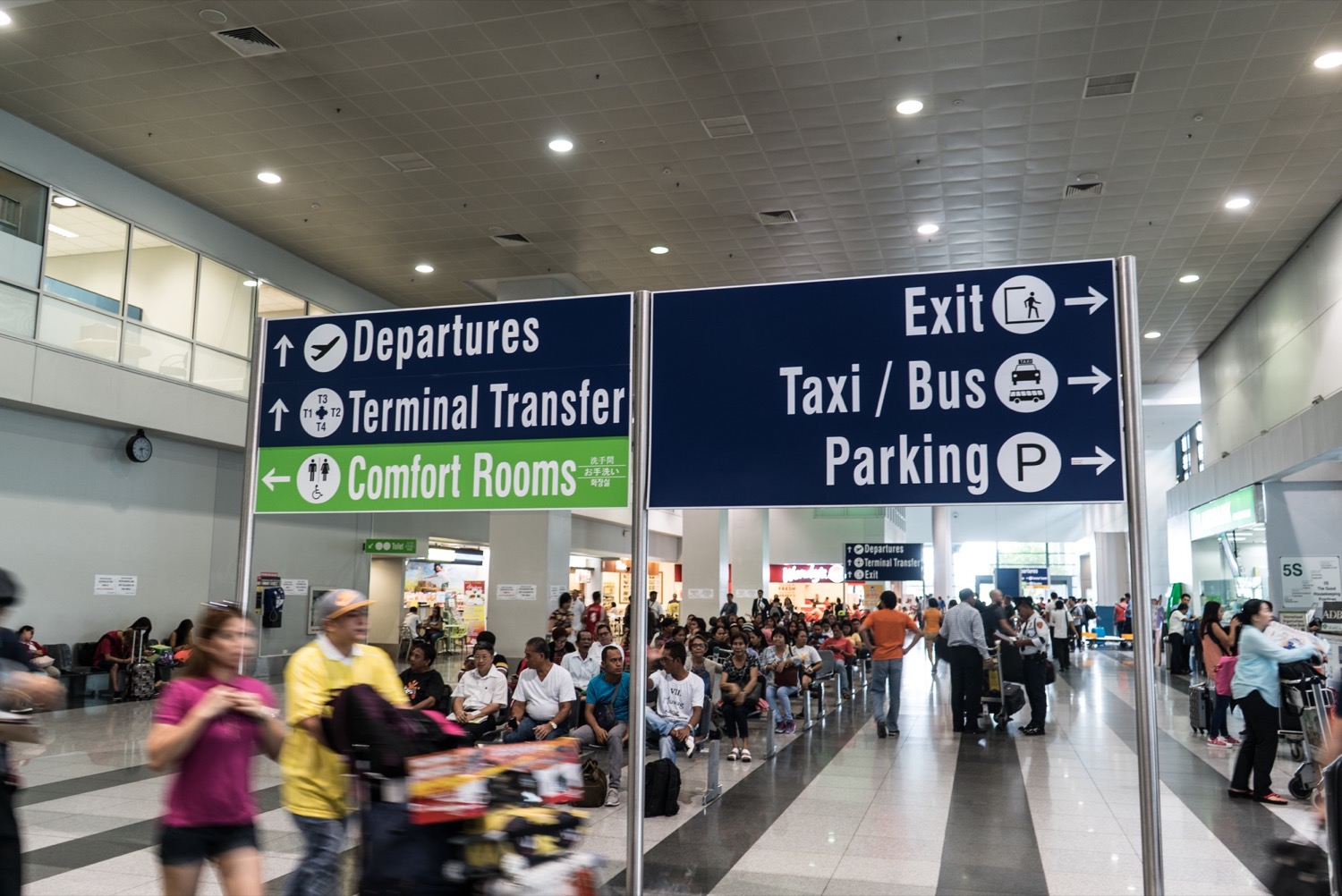 出了机场,却没找到出租车的候车点,心里有点纳闷想该怎么去酒店,看到一个本地人的家人来接她,就上前问了一下路,这个大姐建议我们搭乘菲律宾的滴滴GrabTaxi,不像Uber需要有一个能通话的联系电话,GrabTaxi在机场有人工叫车点,跟员工说你要去哪,她们会帮你叫车,这一点对于外国用户来说,还是很不错的。两位身着深绿色衣服的妹纸就是GrabTaxi的员工。