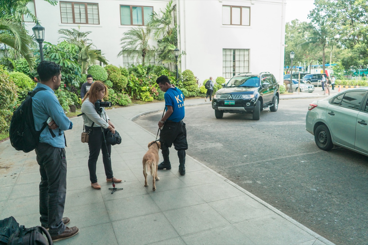 鉴于马尼拉的安全状况,酒店进门需要安检,除了警犬,安检门,包裹都要检查。连我的无人机背包都不能带进去,安保帮我寄存在门口。