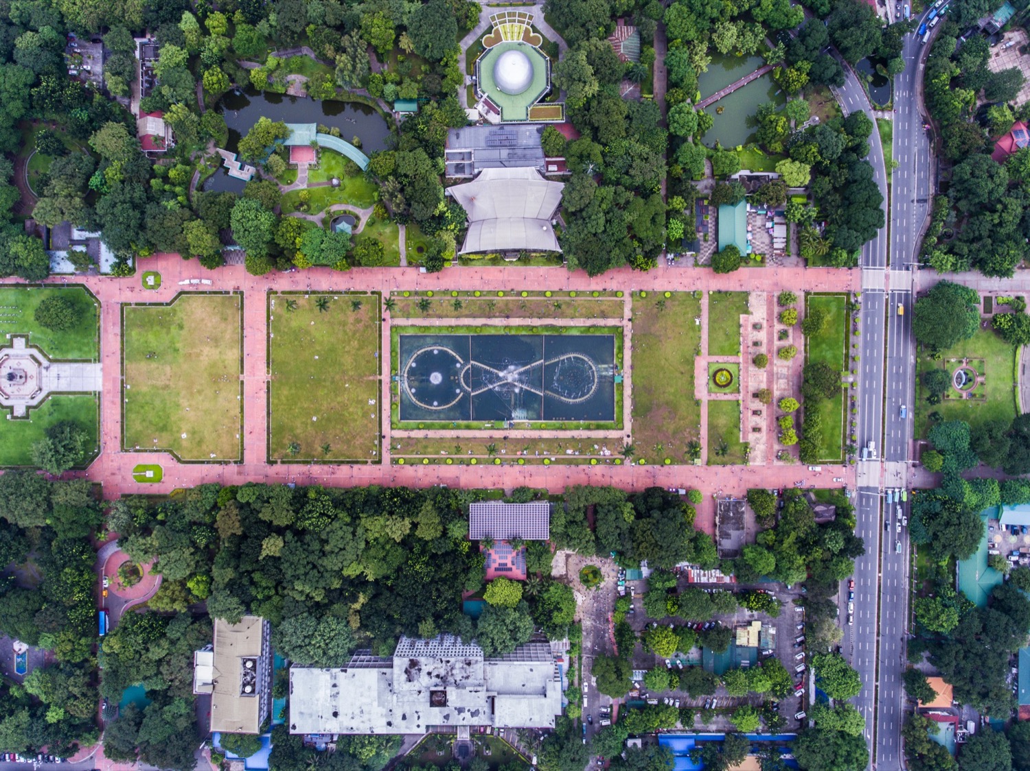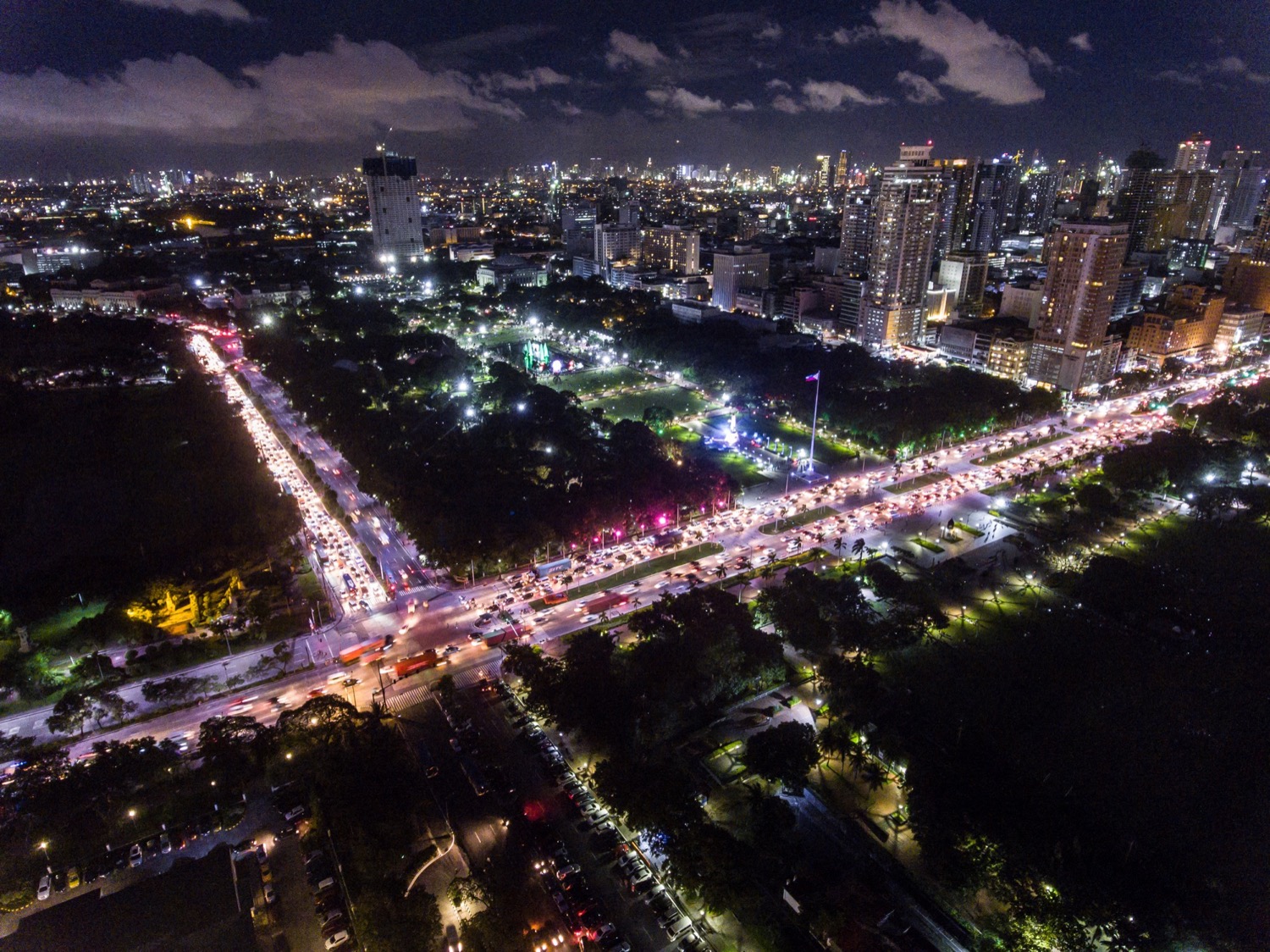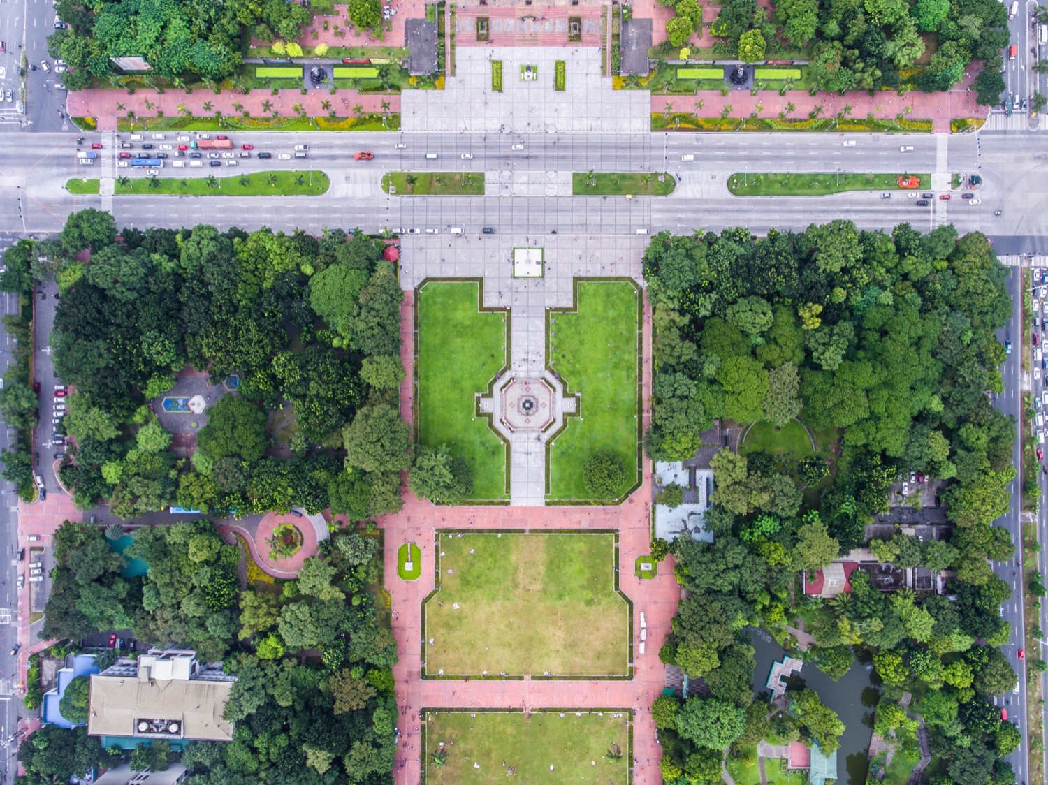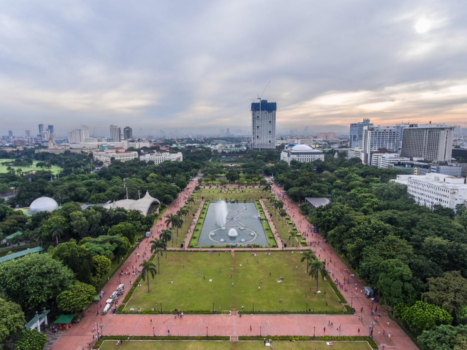 太阳从城市的另外一头升起,下方这里就是马尼拉的人民广场。