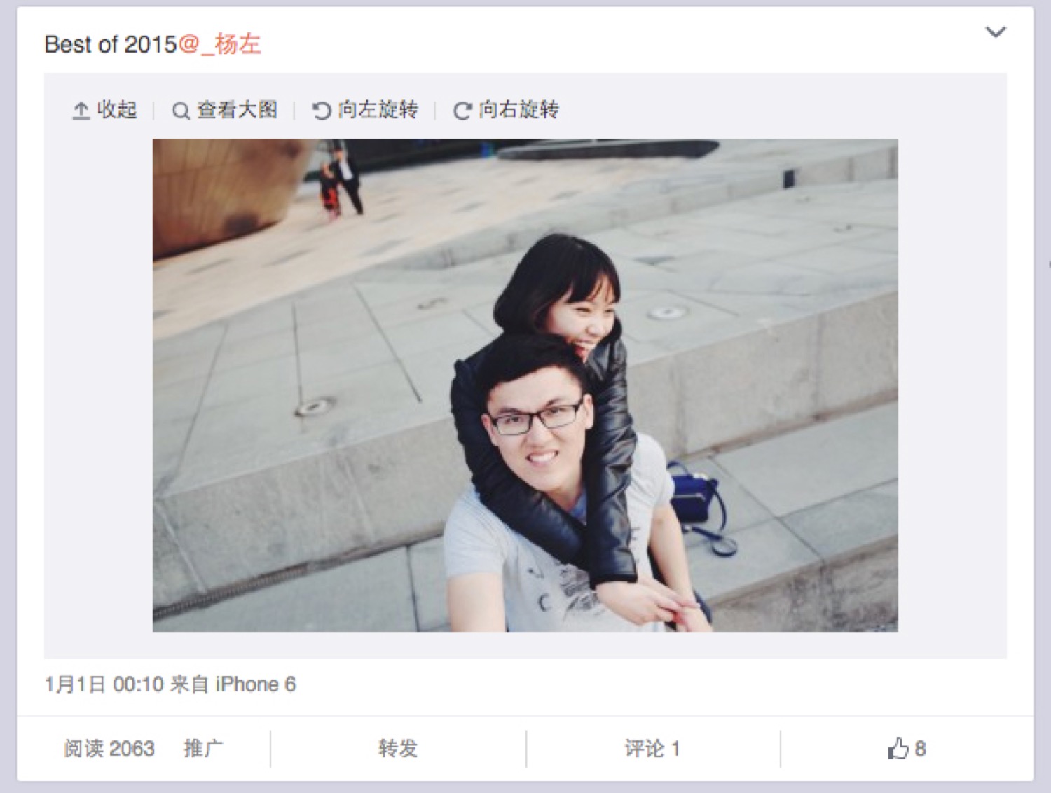 2015年,我的「晒妻狂魔」的称号已经在朋友圈中传开。这一年,我觉得自己最幸运的一个事,就是拥有了一段稳定和幸福的感情。认识了@_杨左童鞋。