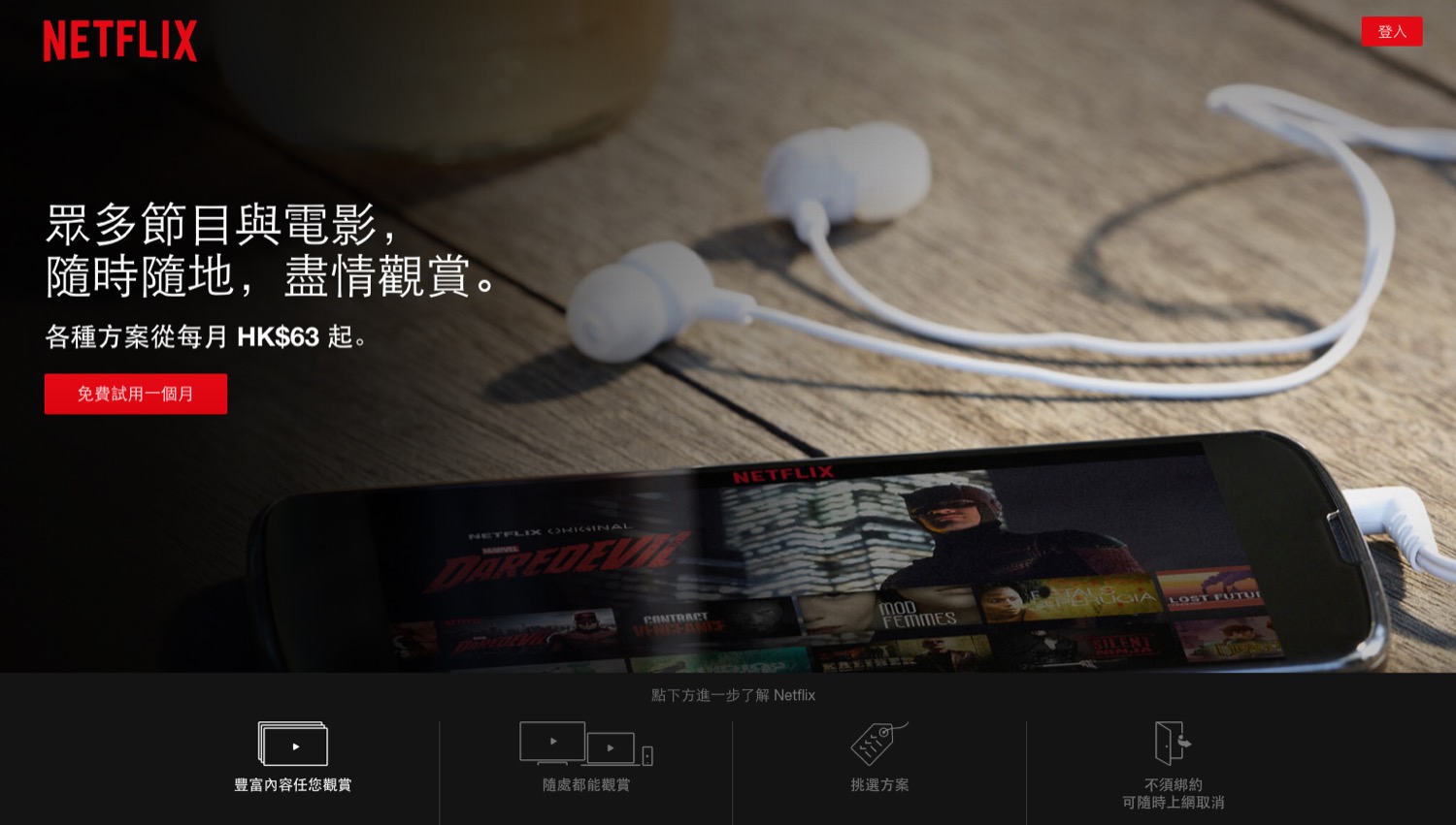 Netflix有一个月的免费试用,这次新增加的国家和地区中包含了中国香港,想着不用白不用,我也注册了一个香港的Netflix帐号,下面这篇博文就做一下简单的评测。