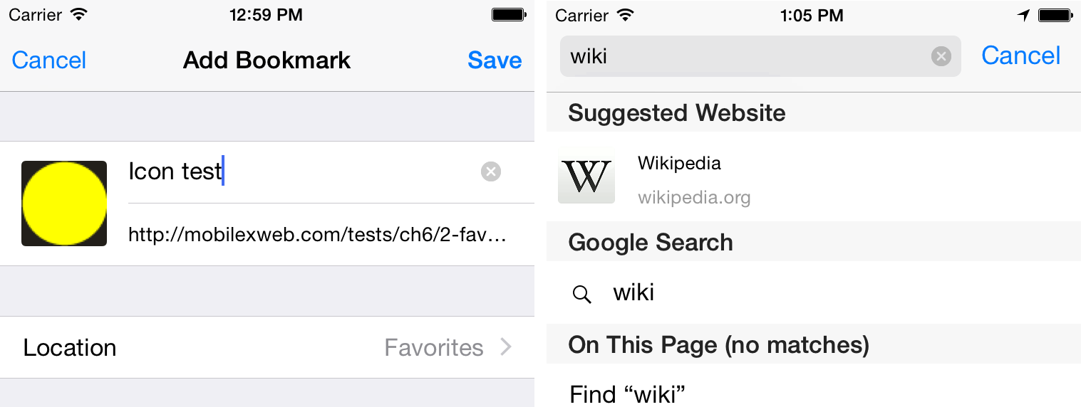 相比其他移动端上的浏览器,iOS 8并没有支持有些功能: