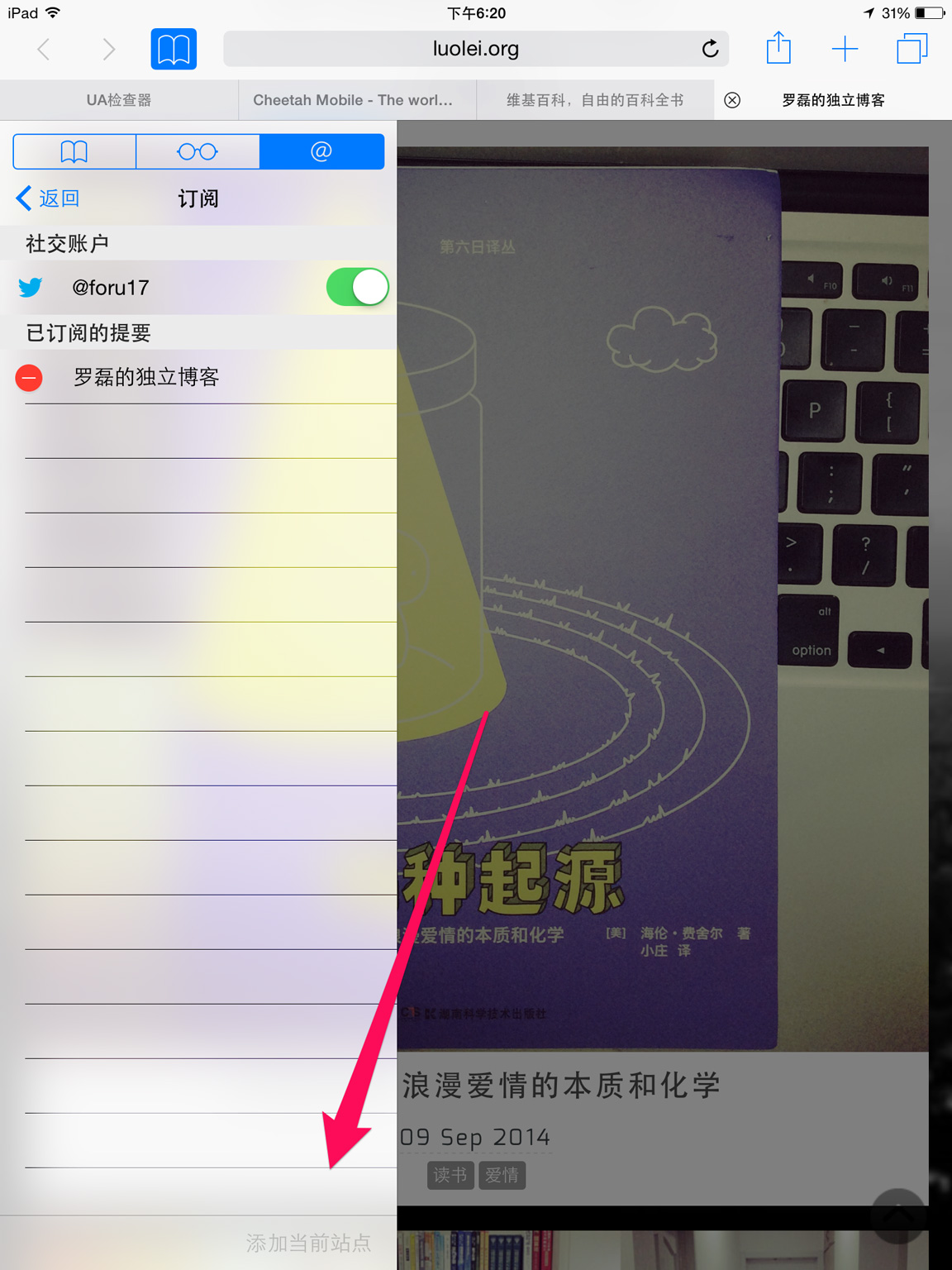 如果你的网站提供了RSS订阅,iOS 8用户可以直接在浏览你网页的时候在书签栏打开他。就是那个@图标里面有个订阅的按钮,虽说有点小低调,但好歹还是有嘛 ノ( ´ ▽ ` )ノ。