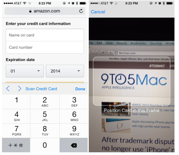 Safari如今支持自动补全表单,并且当Safari检测到你要填写的是信用卡的时候他会允许你开启摄像头直接扫描实体信用卡。