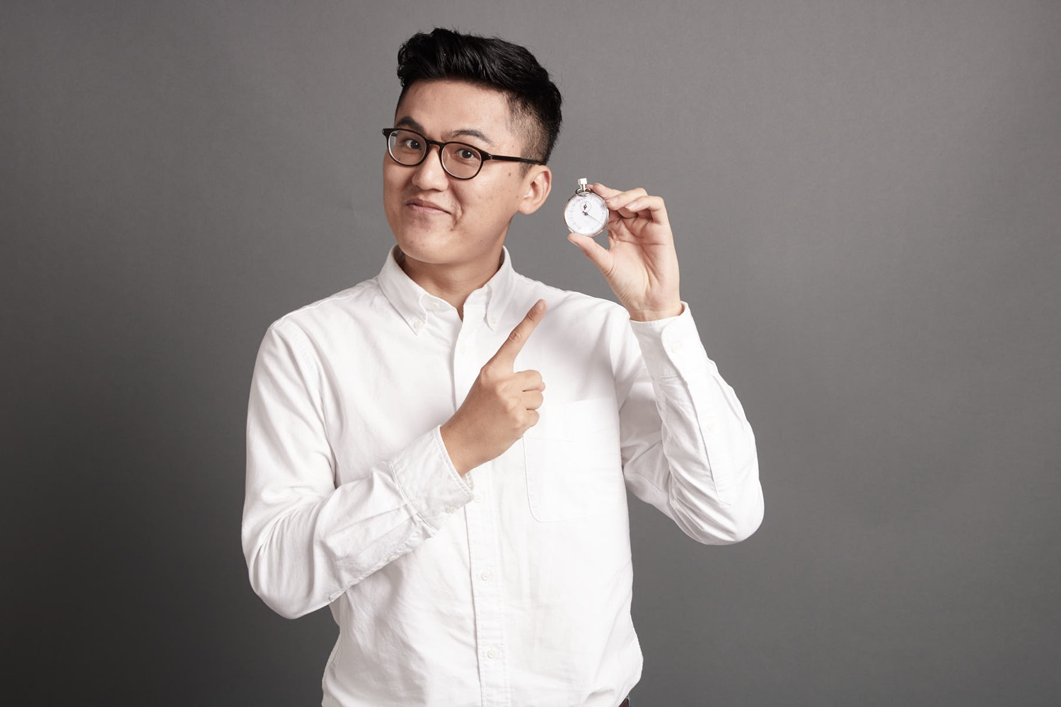 本来买这个表是想着拍视频用,物流送到公司那天,刚好公司安排拍形象照,就顺手用这个表当成了一个道具,原图未修,不饶人,已经被好多朋友吐槽成了一个胖子了。