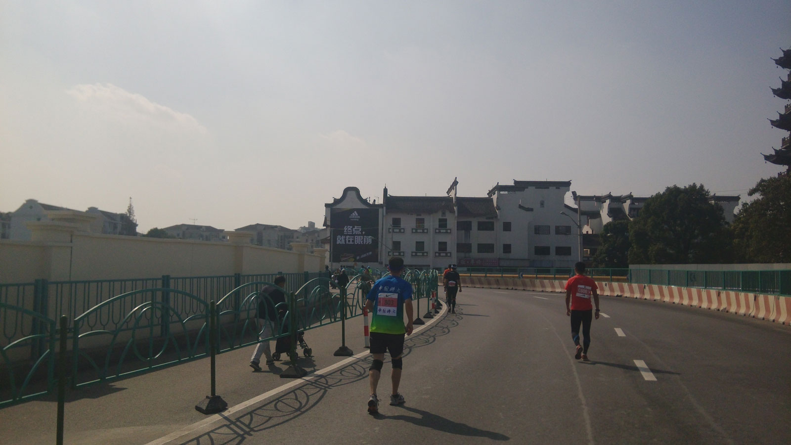 过桥的时候,已经被很多人超了,这段时间就一直走。上桥后还拉伸了下,看了下江景。