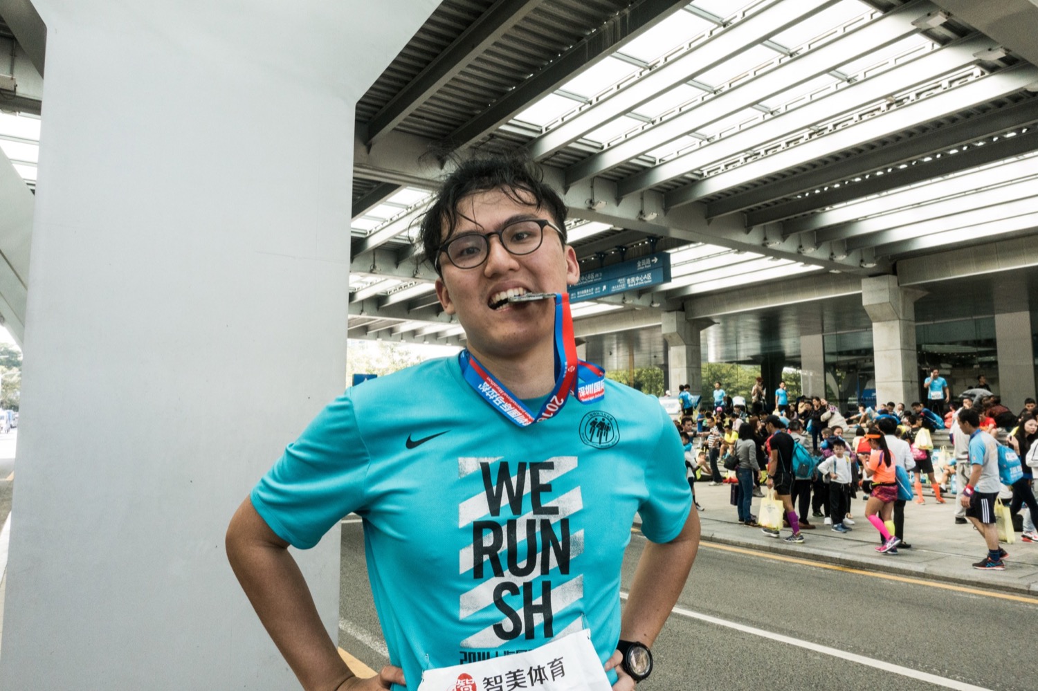路上见到了一个坐着轮椅的参赛者,朝他喊了句「加油哥们」,必须鼓励。话说这哥们比我还快。