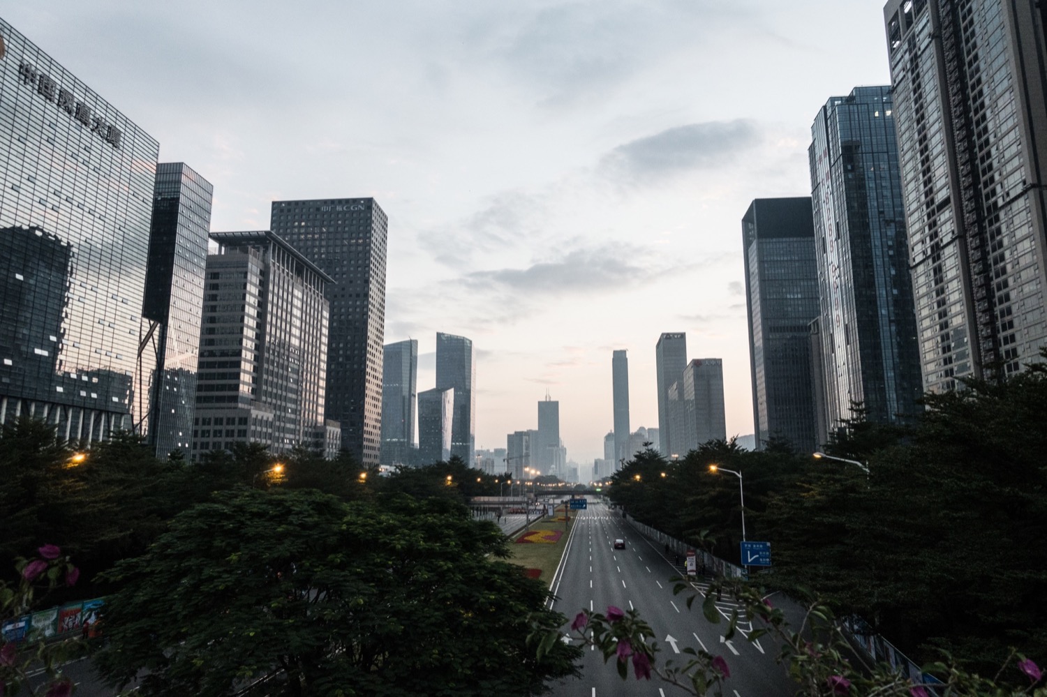 早晨7点的福田,晨光洒在路边的高楼,12月底了,北京已经下雪,上海也开启了冻成狗模式,这里是依旧繁密茂盛的绿树,全国绿化率最高的城市,真好。