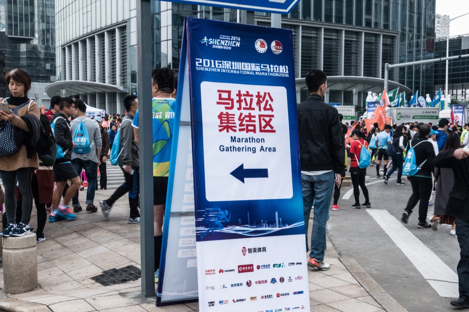 7点出头,来了不少人,路中央的引导牌,指引参赛者前往各自的区域。