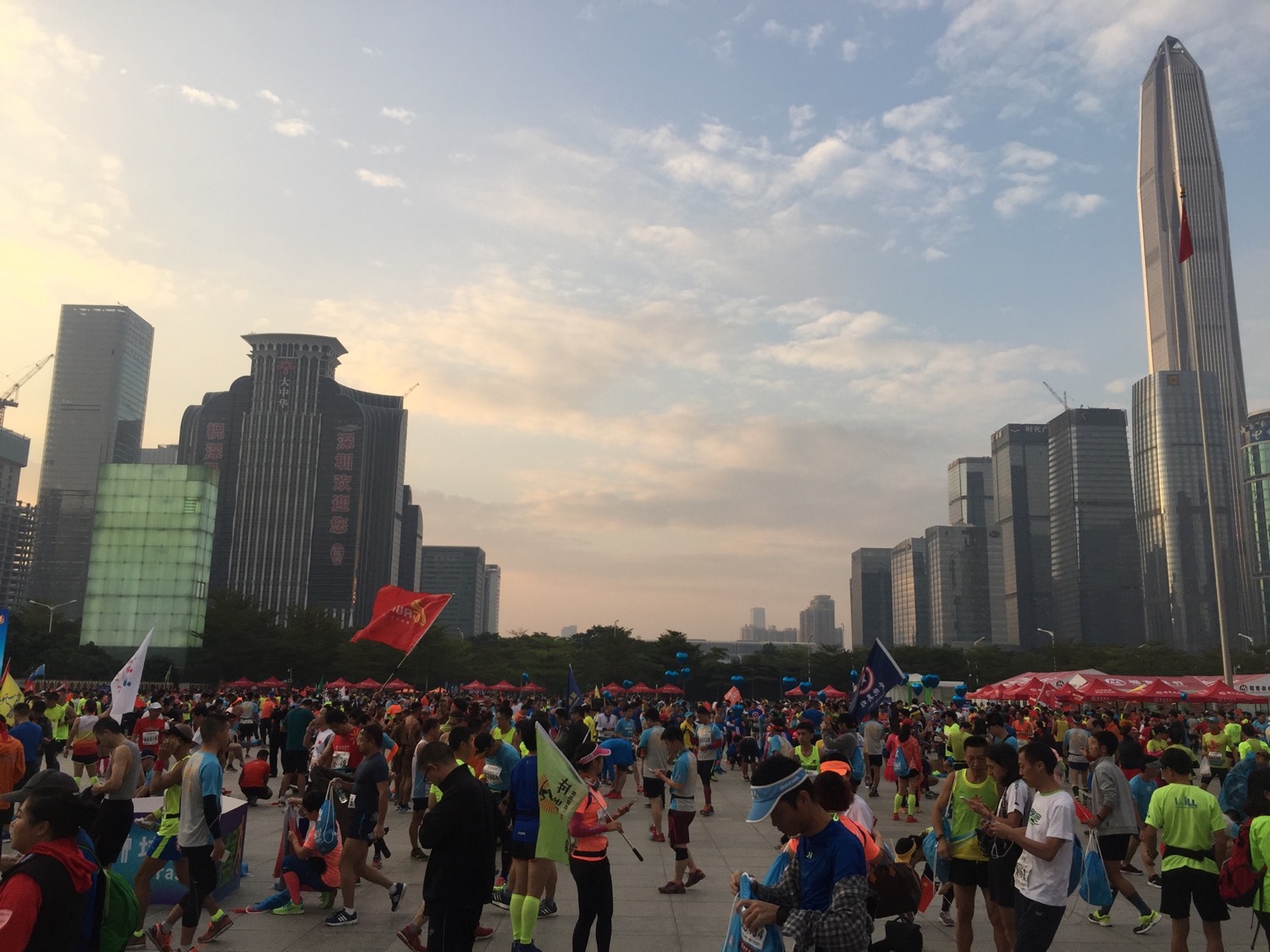 周日,早晨6点,三部手机的闹钟,吵醒了我,起床,叫了辆Uber,前往起跑点福田市民中心。