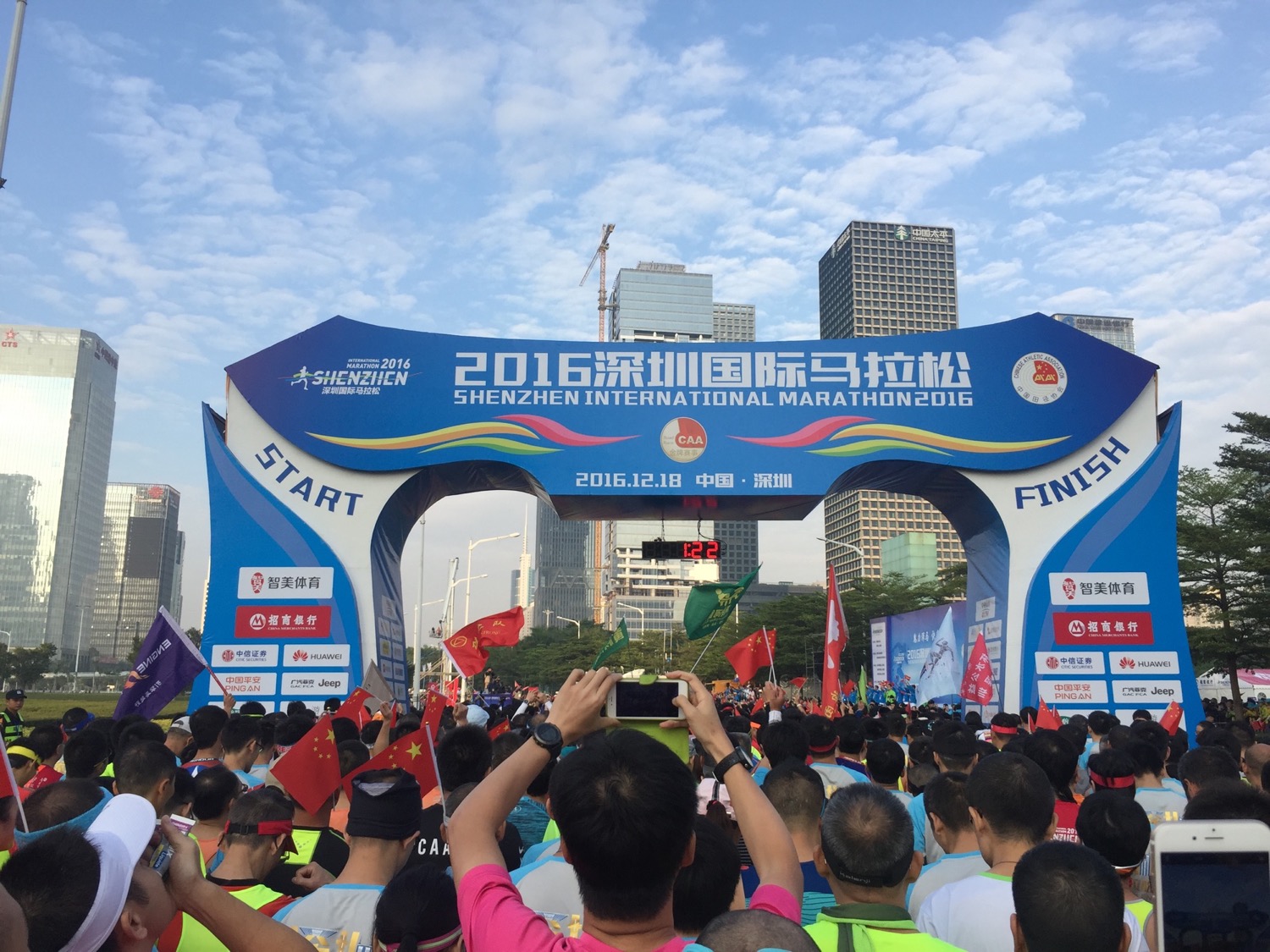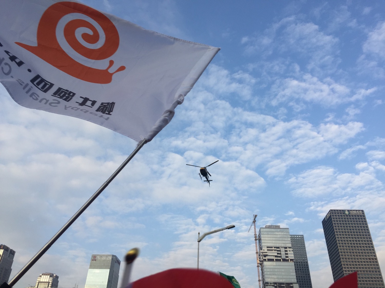 空中有CCTV的直播直升机,在我们头顶盘旋,这也是央视第一次直播深圳马拉松,毕竟办了几届,规格还是上来了。