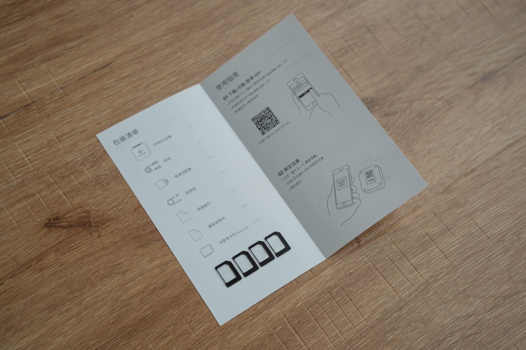 说明书里还配送了4个SIM卡托,里面就是简单的操作步骤,还是挺简单的,下载专门的APP,扫码绑定,激活就可以了。