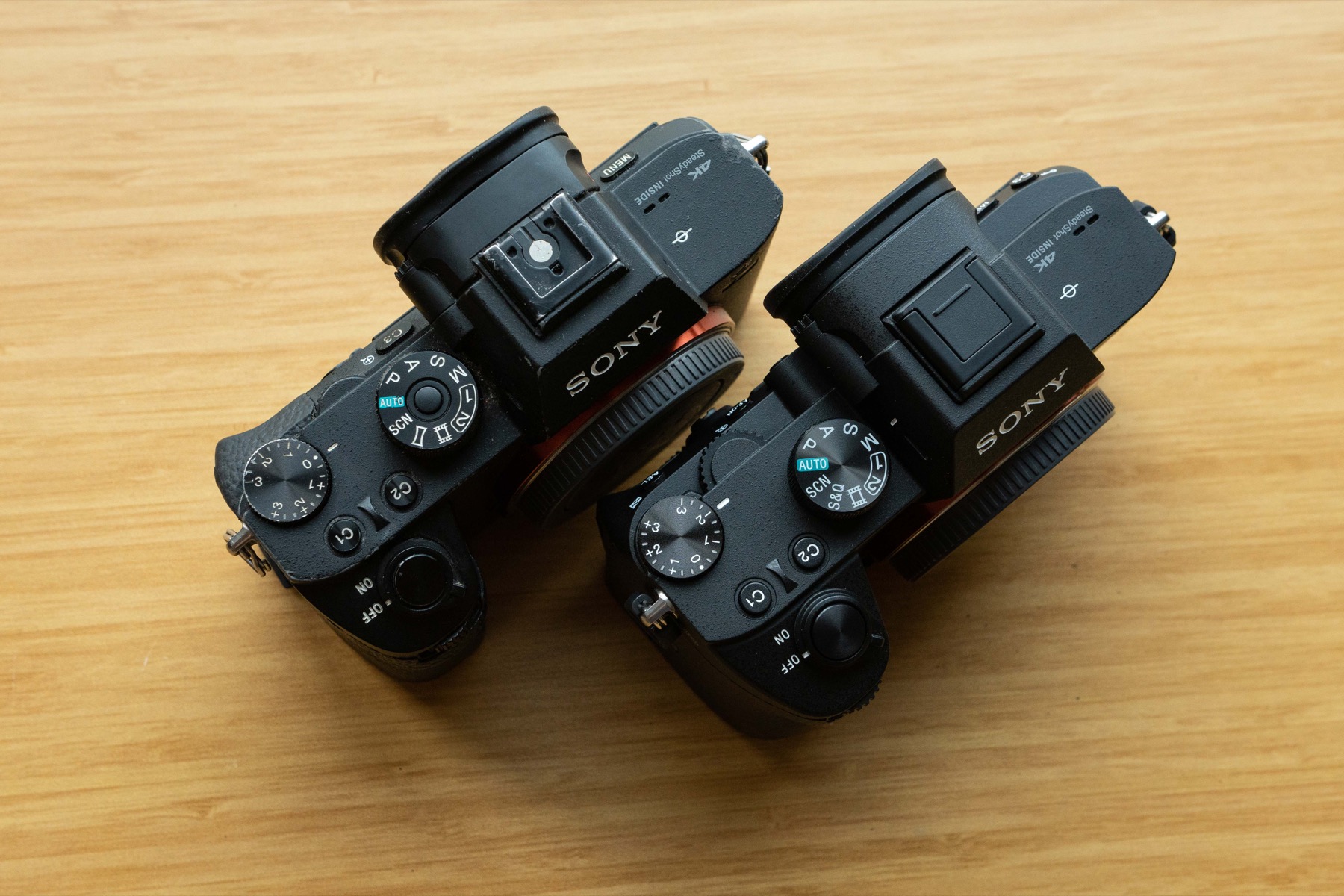 A7M3和A7S2顶部对比,可以看出两台相机按钮布局基本没有改动,A7M3厚度稍大一点点。