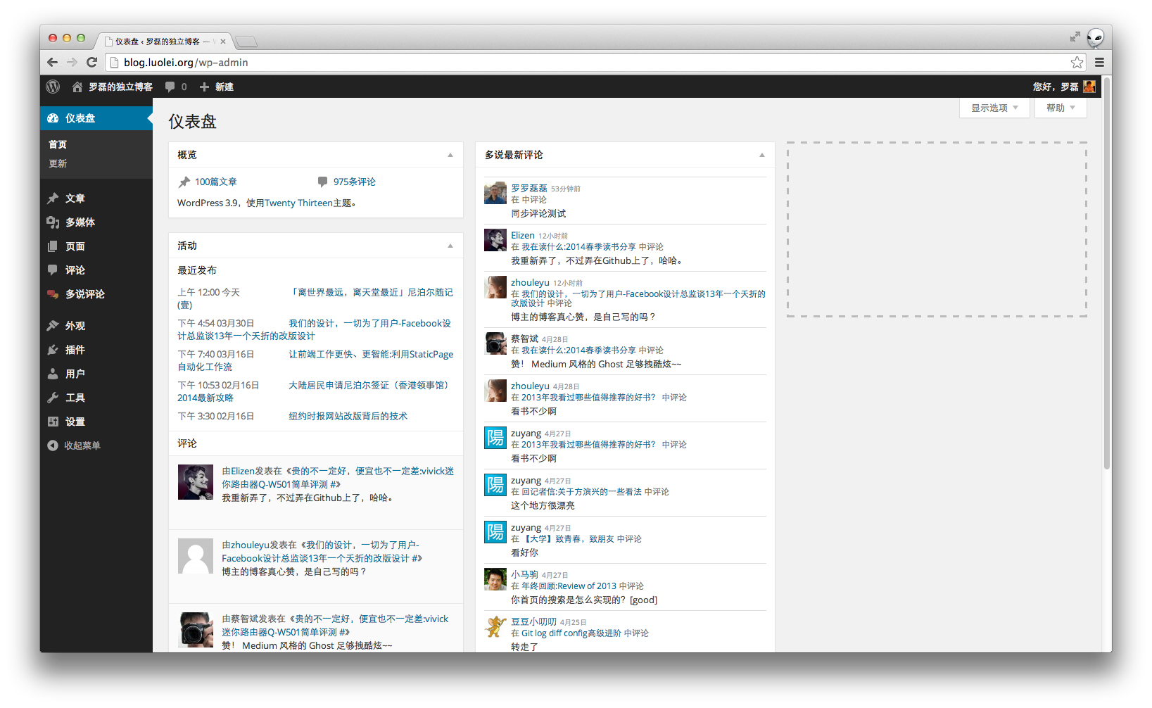 最新的 Wordpress 3.9设计和交互上已经扁平化,后台做了不小的更新,可谓说更加易用。