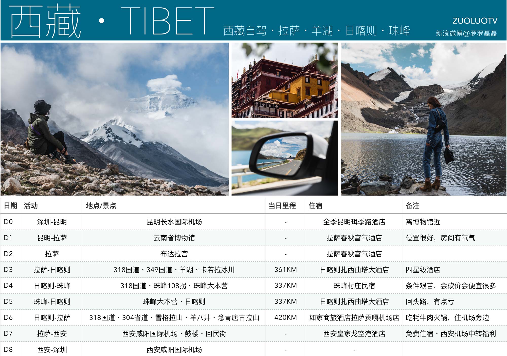 - 预留时间适应高反,刚上高原头几天,在拉萨好好休息让身体适应下先。