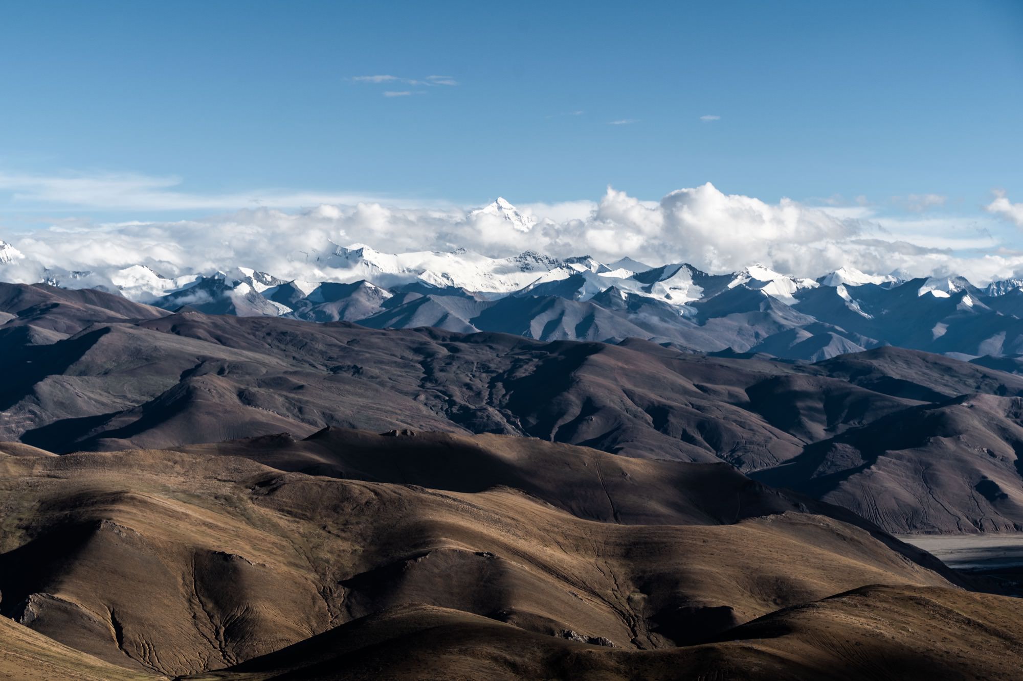 登上半山腰,对面就是念青唐古拉山脉,这个雪山背后,就是纳木错。