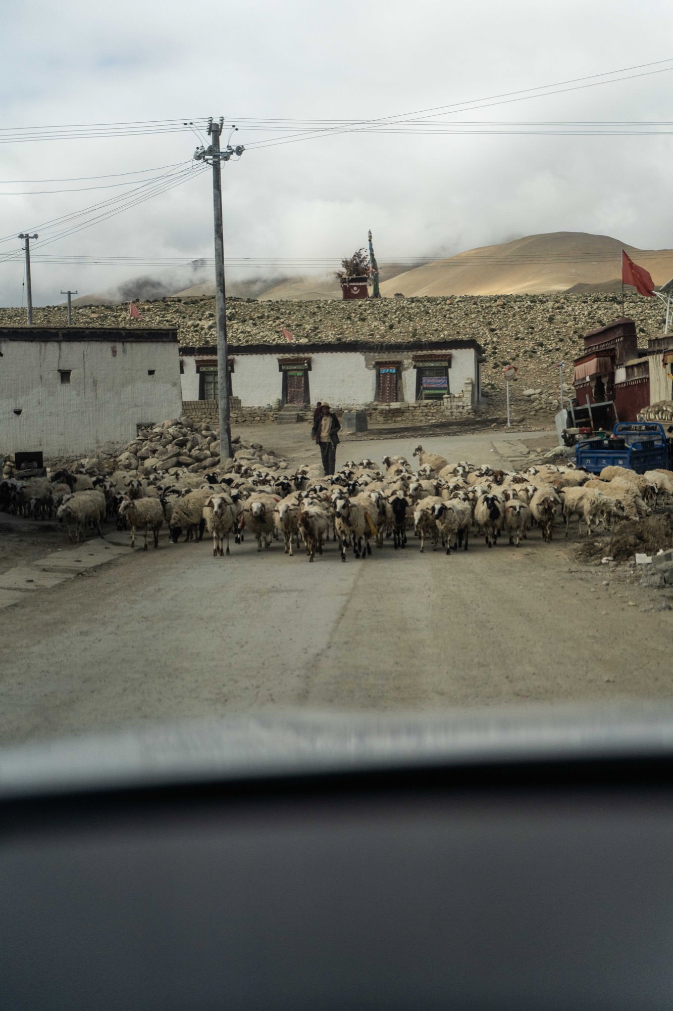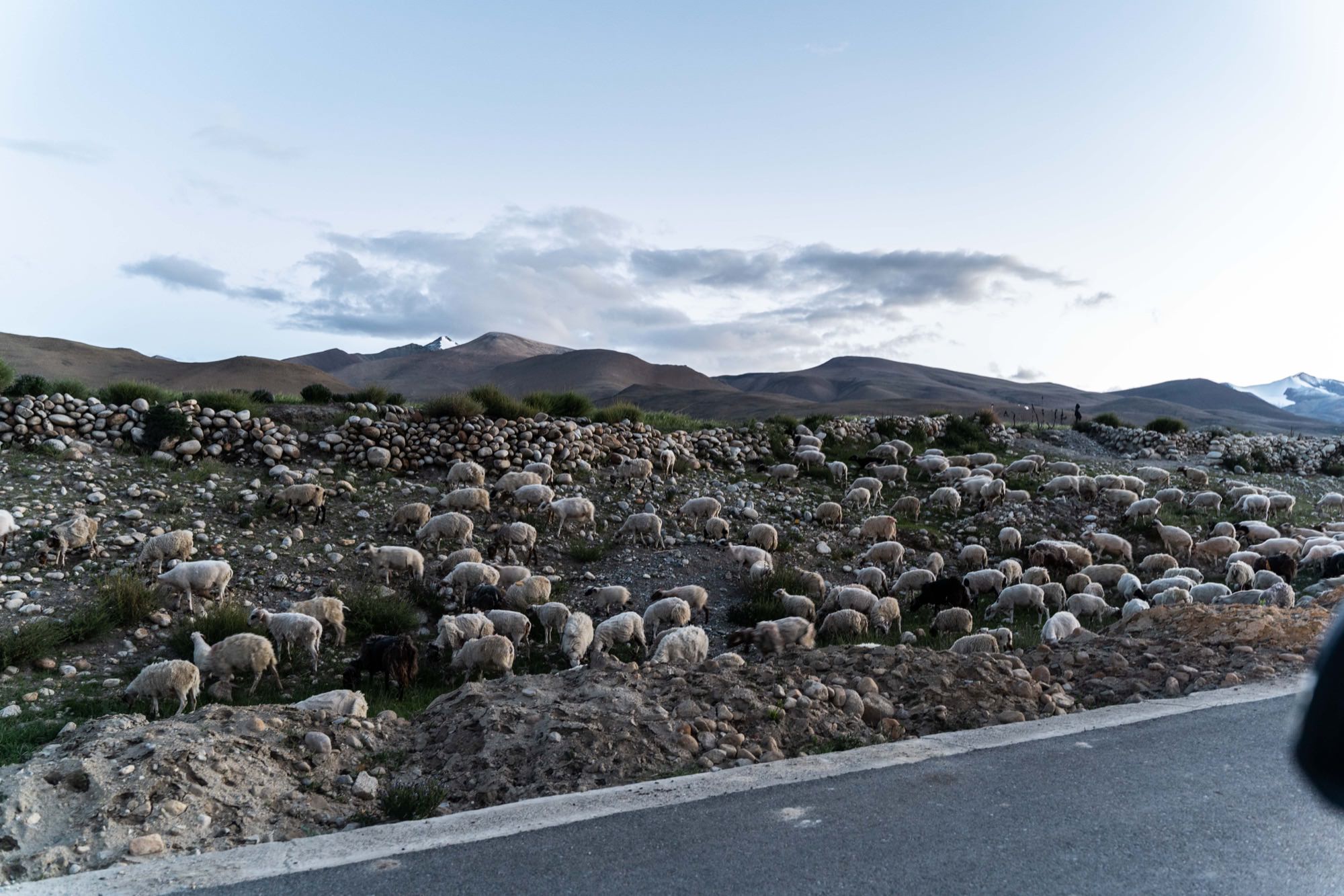 第二天早上9点多,从民宿出发驱车前往珠峰大本营。羊们也出来吃草了,想吃。